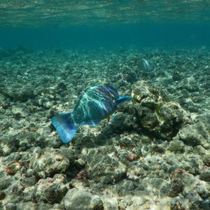 浅瀬のサンゴ礁に、ダイビングしないと、出会えないような、大きなコブダイ始め、