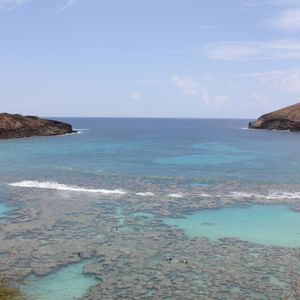2015年のGWに行きました。朝一番早い時間帯、6時にホテルでピックアップしてもらって、ハナウマ湾入り口に着いたのは6:50。天気は快晴!高台から、とても綺麗なハナウマ湾が見えました。