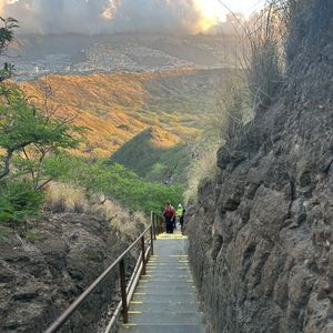 60歳後半の夫婦です youtubeでダイヤモンドヘッド登山を見ていると簡単そうなのでチャレンジしましたがかなりきつかったです でも頂上での景色と爽やかな風に疲れが吹っ飛びました 登って後悔なし ホテルの送迎もあったので安心して登山することができました