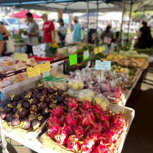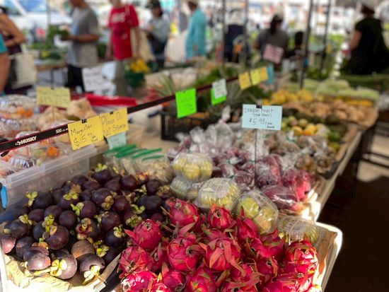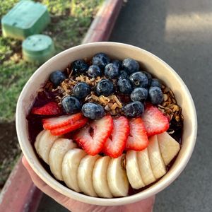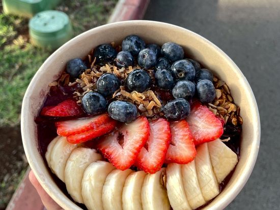朝早く、ダイヤモンドヘッドの頂上まで30分ほど登りましたが、日の出待ちの登山者で頂上は大混雑。すぐに下山してKCCマーケットへ向かいます。マーケットではズッシリと重いアサイーボウルを食べました。よく冷えていて、美味しかったです。