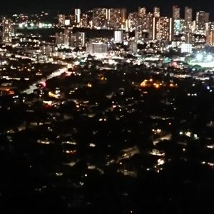 夜景は、頂上に向かう途中の道幅が少し広くなっている場所まで戻り、車を路駐しての鑑賞になりますが、ほかにも多くのツアー会社が来ていて、観光客は結構多いです。ここは南向きなので、ワイキキの夜景やダイヤモンドヘッドを見ることはできますが、頂上の州立公園のようにオアフ島西海岸を眺めることはできません。