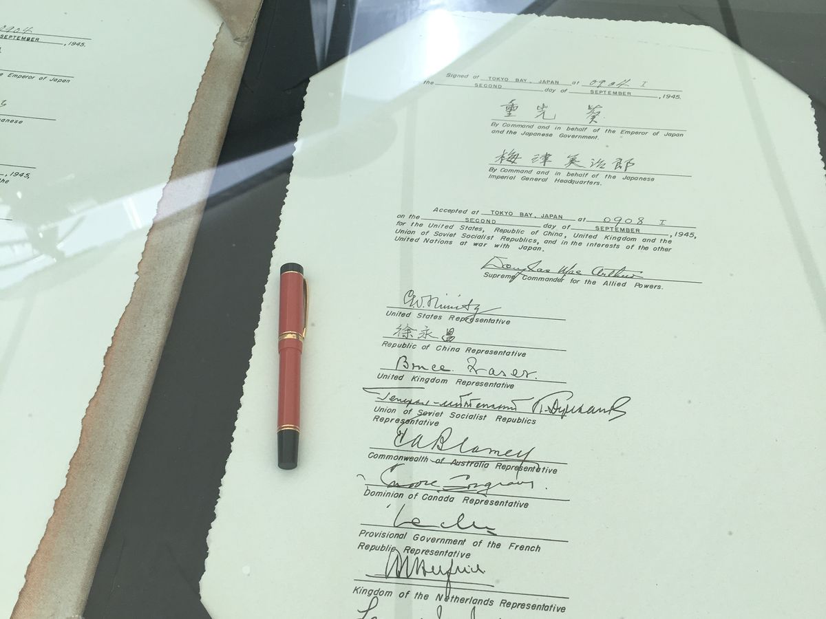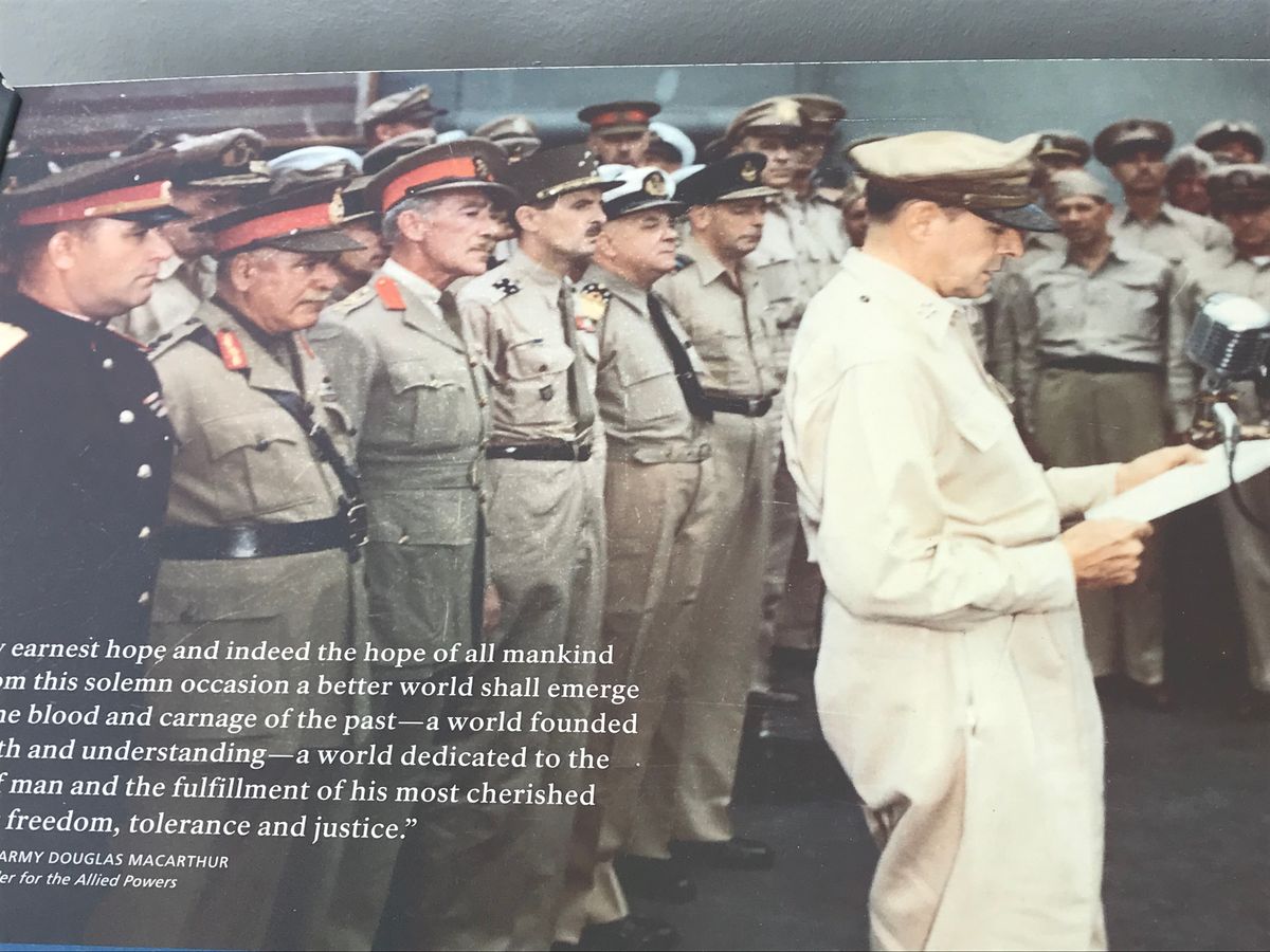 東京湾上で日本が降伏文書に調印したのもこの船です。その様子が文書レプリカや写真などあり敗戦占領歴史を感じます。