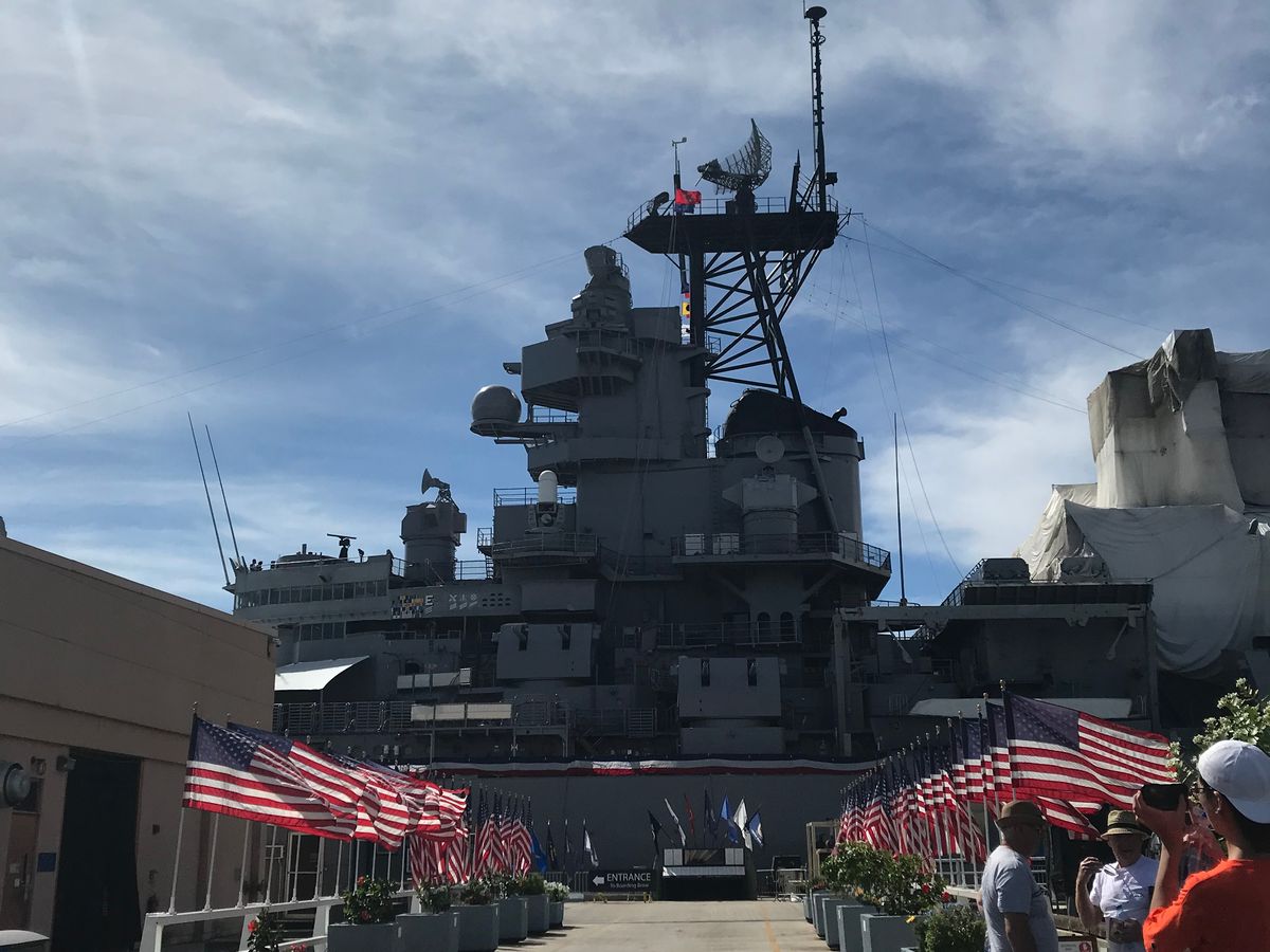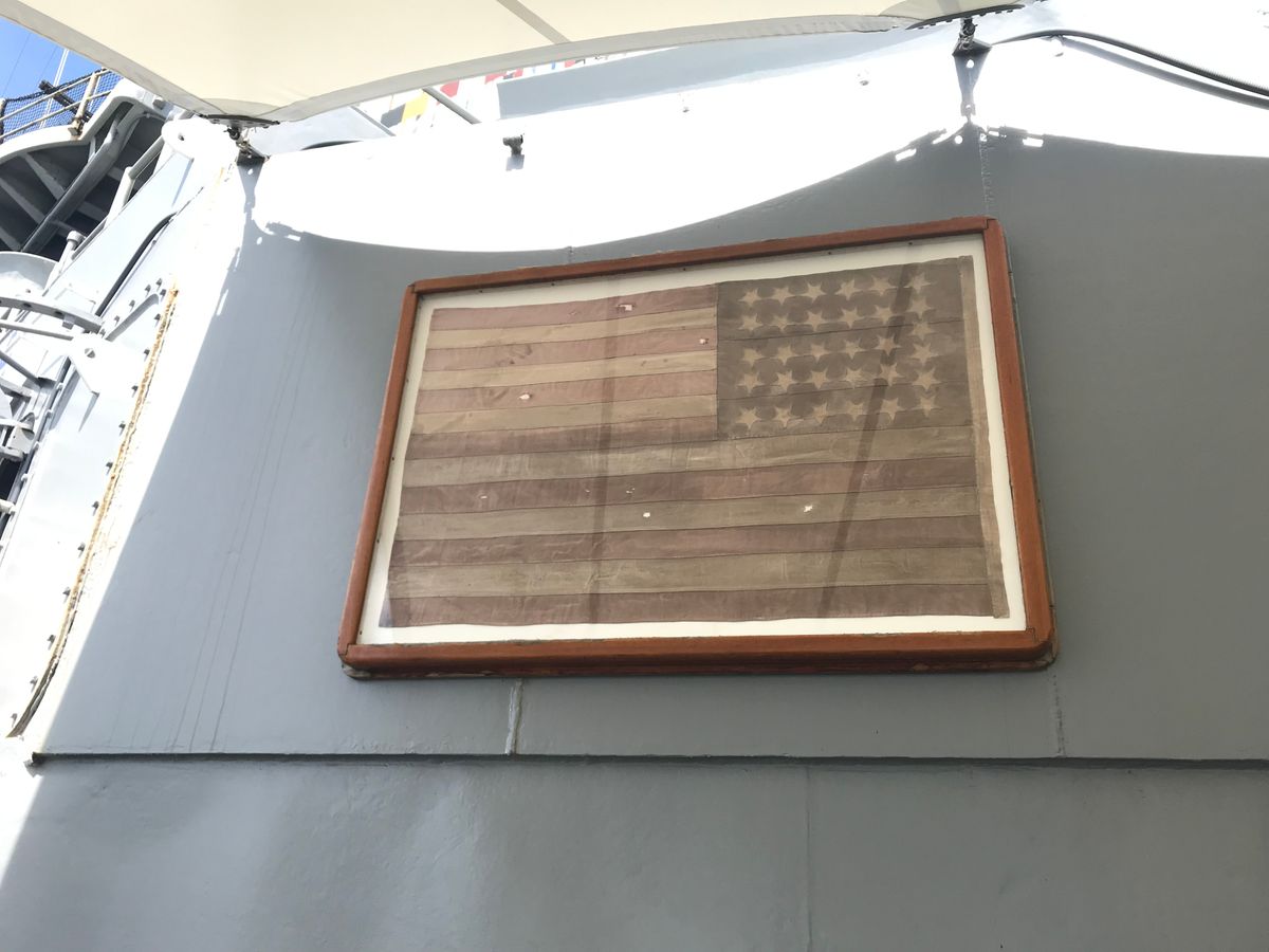 ミズーリ戦艦では貴重過ぎる歴史の数々を象った展示物がたくさんあり、特にペリーの黒船にあった星条旗や、神風特攻隊が激突した痕跡、特攻隊員の水葬写真など、目から鱗でした。