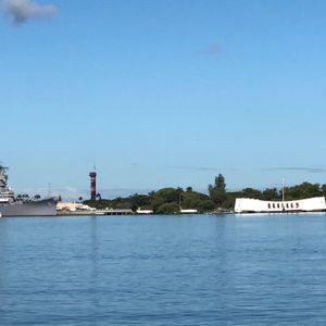 約80年前にここで武力衝突が始まったと思うと、日本人として見て考えることが重要と思った。日本にも戦争関連の資料館はあるが、展示や解説がアメリカ目線と日本目線で違うこともあり、本ツアーに参加して、太平洋戦争を深く知ることに繋がった。大きな戦艦が未だに油を出しながら沈んでいる光景は、武力衝突の凄さを知ることになった。残念ながらアリゾナ記念館の桟橋が修復中で船からの見学となったが、修復が済んだら、また参加してみたいと思う。