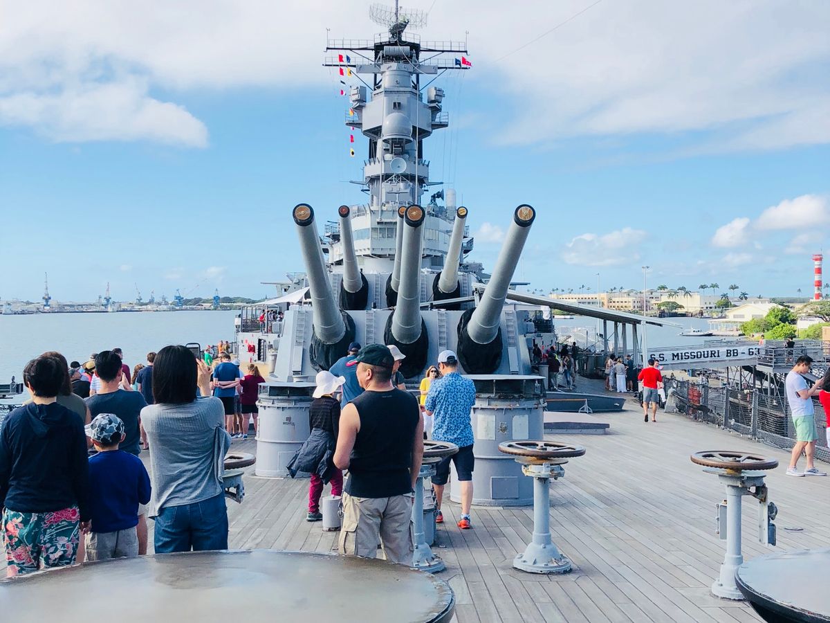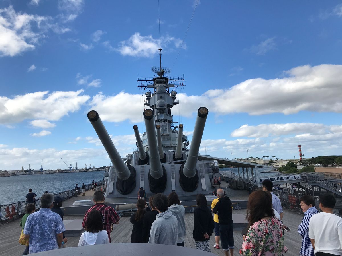 ここだけは外せない!ハワイ旅行が決まってすぐにツアーの申込みをしました。行って良かったです。戦艦ミズーリでのガイドの方はとても良かったのですが、送迎、全体のガイドをした方の私的な意見?うんちくが長く、最悪のガイド。それさえなければもっと見学時間を長く取れたのに!もっともっと見学したかった!!それがとても不満でした。もう1度は行きたいです。