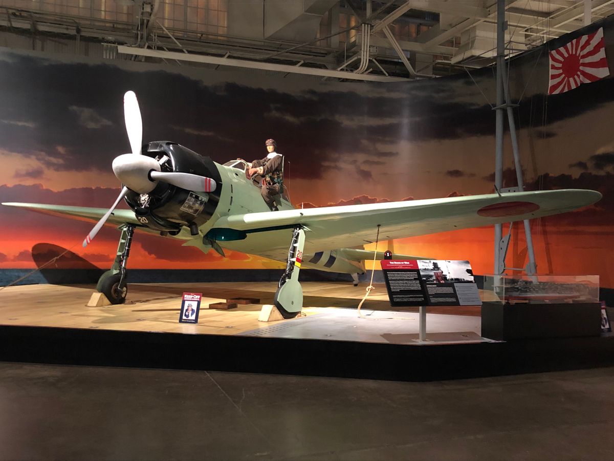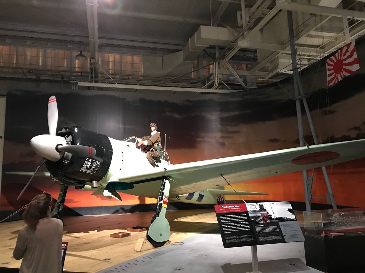 航空博物館ではアメリカの戦闘機より目立つ場所に零戦が立派に展示されている。