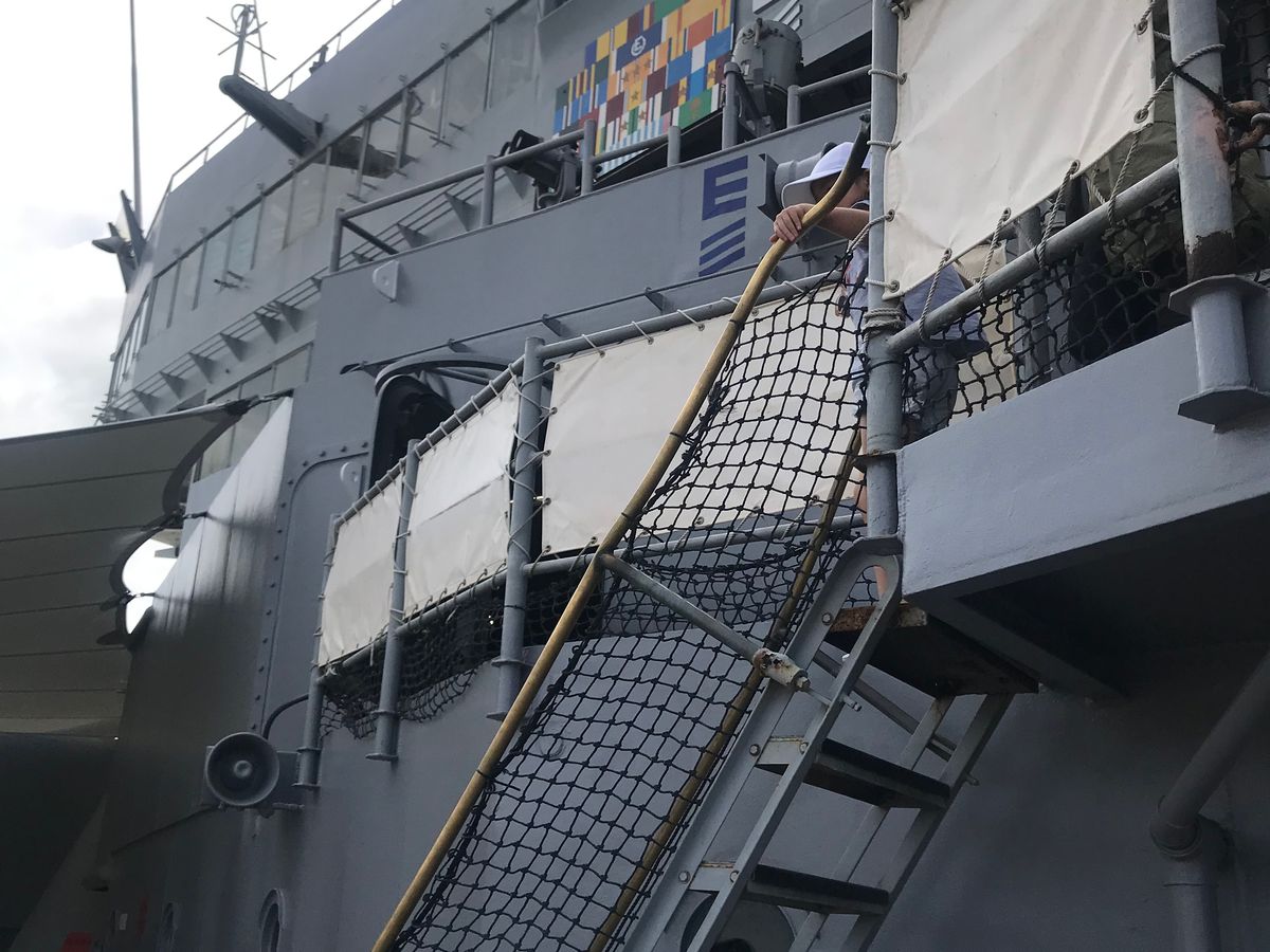 同じ行くならと、戦艦ミズーリは探検家ツァーに参加しました。日本語ガイドのジョージさんとブロードウェイや射撃管制室・第一砲塔内部など狭いところもゆっくり見学することができました。有難うございました。