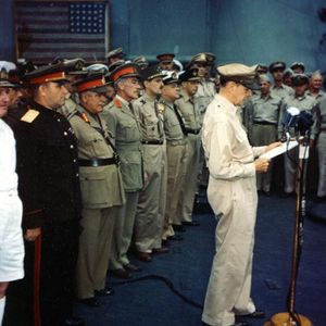 日本が降伏文章の調印式にのぞんだ場所、マッカーサー元帥が掲げたペリー提督の黒船の星条旗見れました。