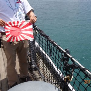 幼少時にみた戦艦ミズーリに体当たりする特攻機の写真、何十年も気になっていましたが、十数年前かTVでその特攻機のパイロットが特定されたことを知りました。同時にこの時、ミズーリの艦長と水兵達に丁重に水葬されたことも・・。日本人として弔いをしたいと思っており、ガイドさんに無理を言ってお祈りをさせてもらいました。私の無理を聞いて下さったガイドさん、再入場させていただいたミズーリ記念館の方々に感謝いたします。