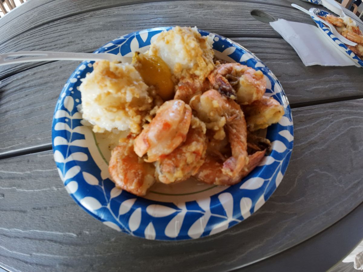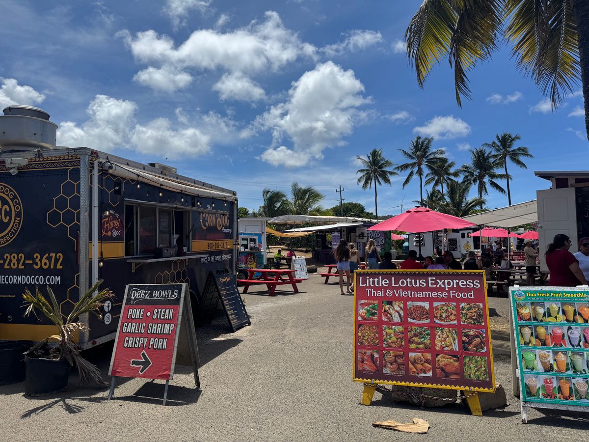有名な「ジョバンニ」のガーリックシュリンプをあまり並ばずにたべられました。他のフードトラックも充実していて選ぶのも楽しいです。広々とした日陰の席で快適にランチできました。