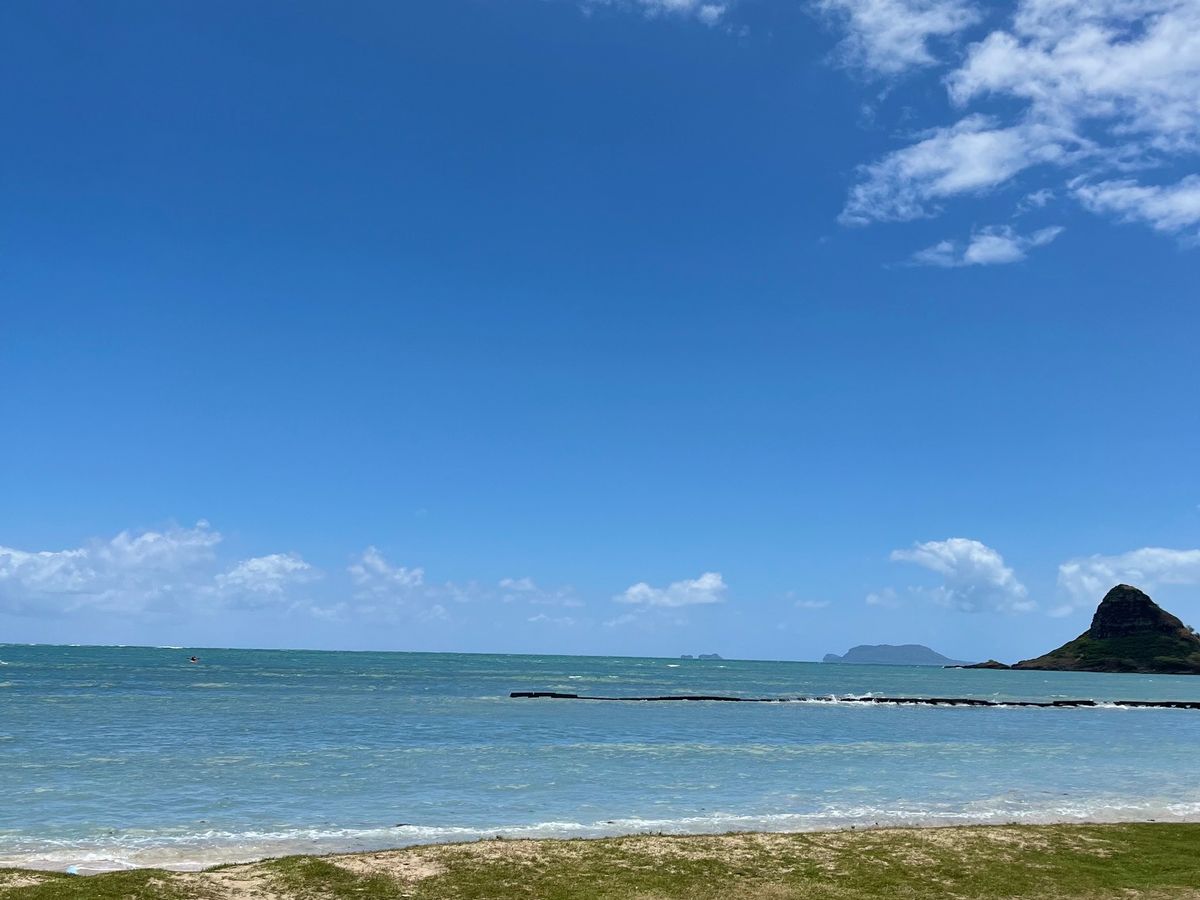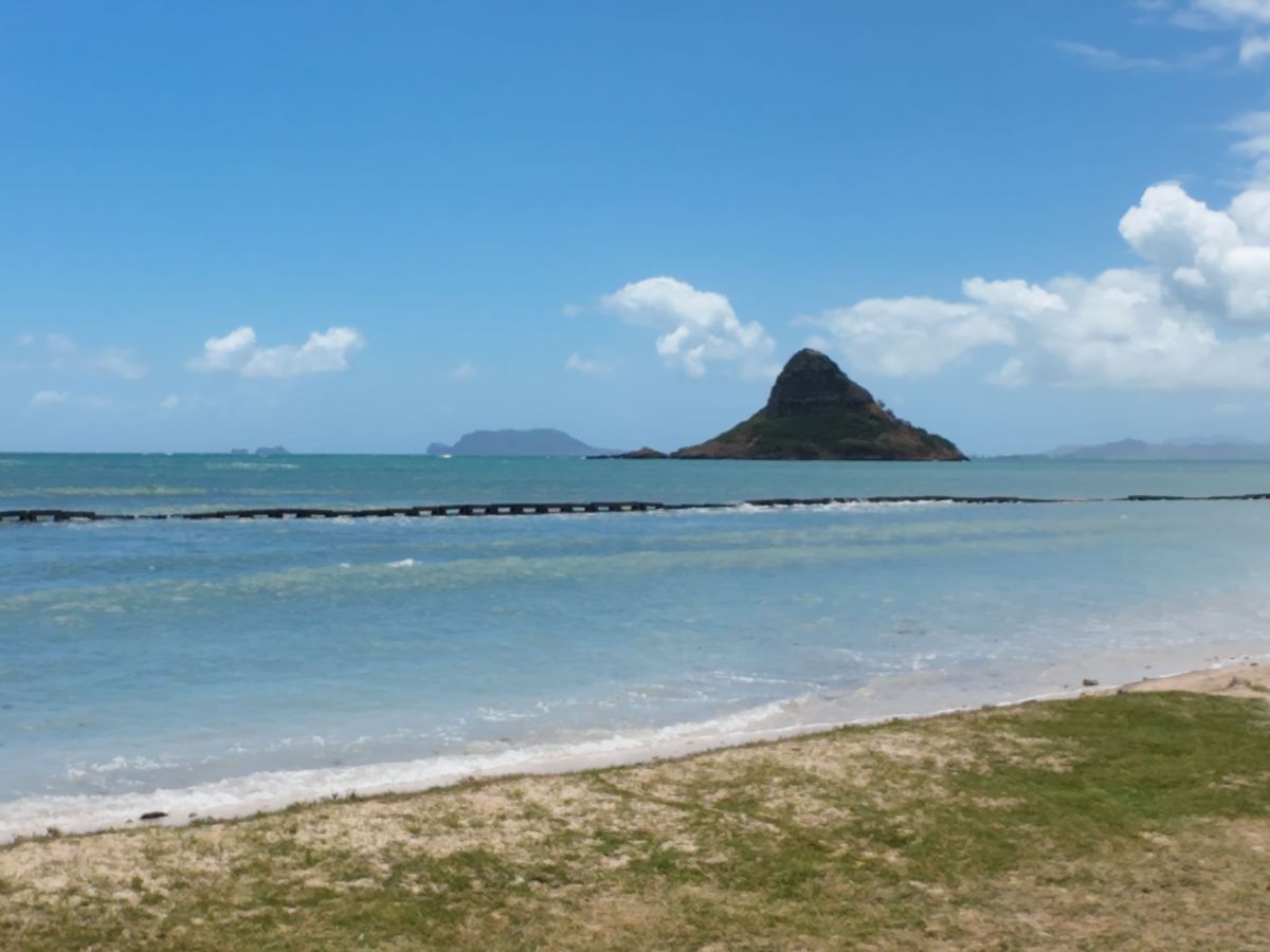 芝生のすぐ目の前が海で絶景。休日にはローカルの人がバーベキューを楽しむらしく、ハワイの日常を感じられます。自分たちだけではなかなか知ることのできないスポットで、ツアーならではの体験でした。