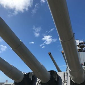 およそ75分のアリゾナ記念碑プログラムが終了すると、つぎは戦艦ミズーリへ移動。戦艦ミズーリはフォードアイランドと呼ばれる島全体がアメリカ海軍基地となっている一角に停泊している。停泊中とはいえ主砲は仰角45度に上げられ防空戦闘の臨戦態勢をとっている。つまり、すでに退役している戦艦ではあるが、近くに沈没しているアリゾナの防御をしているという形なのだ。この退役軍艦は日本が降伏文章に調印したことや湾岸戦争の際にも出動したこと、ギネスブックに登録されていること。スティーブン・セガール主演の「沈黙の戦艦」の舞台になったことなどでも知られている。残念ながら長年潮風にさらされていた影響で腐食したために、その改修工事のために艦橋はシートで覆われていた。
