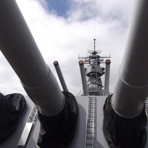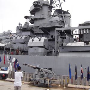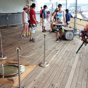 甲板に立ってみると三本の主砲、副砲、機関砲等が並び、映画のワンシーンが脳裏に浮かんできた。ガイドの説明を受けながら甲板を歩いていると、沖縄海域においてゼロ戦特攻機が1機ミズーリに向けて右舷船尾付近に衝突したその傷跡が痛々しかった。人間の意志の強さや使命感、時代背景が走馬灯のように過ぎ去った。