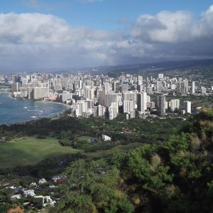 頂上はあいにくの天気であったので絶景とまではいかないが、ワイキキ市街・海・山を見渡せてそれなりに楽しめました。晴れていたらさぞかし美しい風景が楽しめることでしょう。