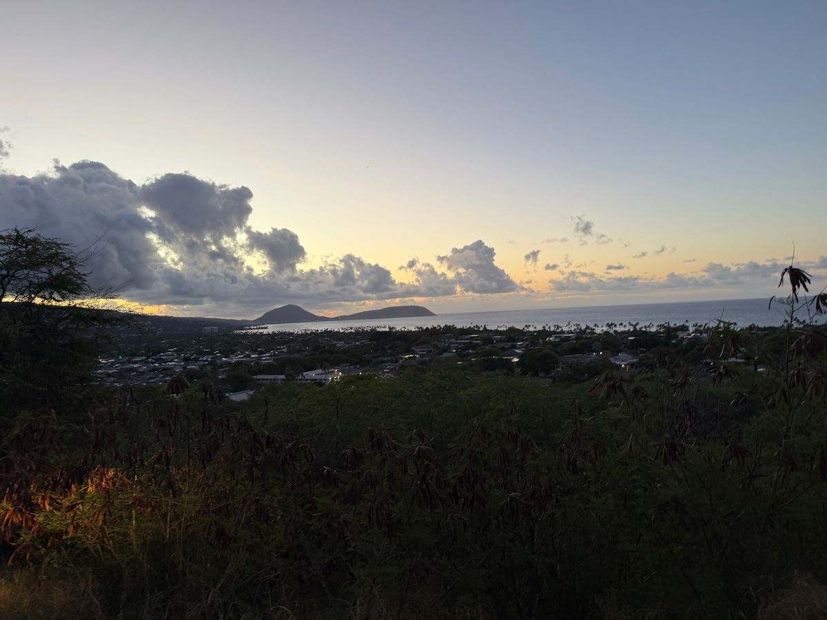 朝5時頃に集合しダイヤモンドヘッド登山口まで行きましたがそこでしばし待機。