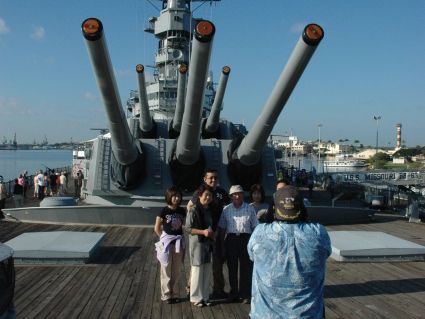 ?戦艦ミズーリー記念館での戦艦内の見学は、とても感慨深 いものでした。特に、零戦特攻機の隊員の水葬扱いの話は 初めて知り、胸がつかえる思いでした。