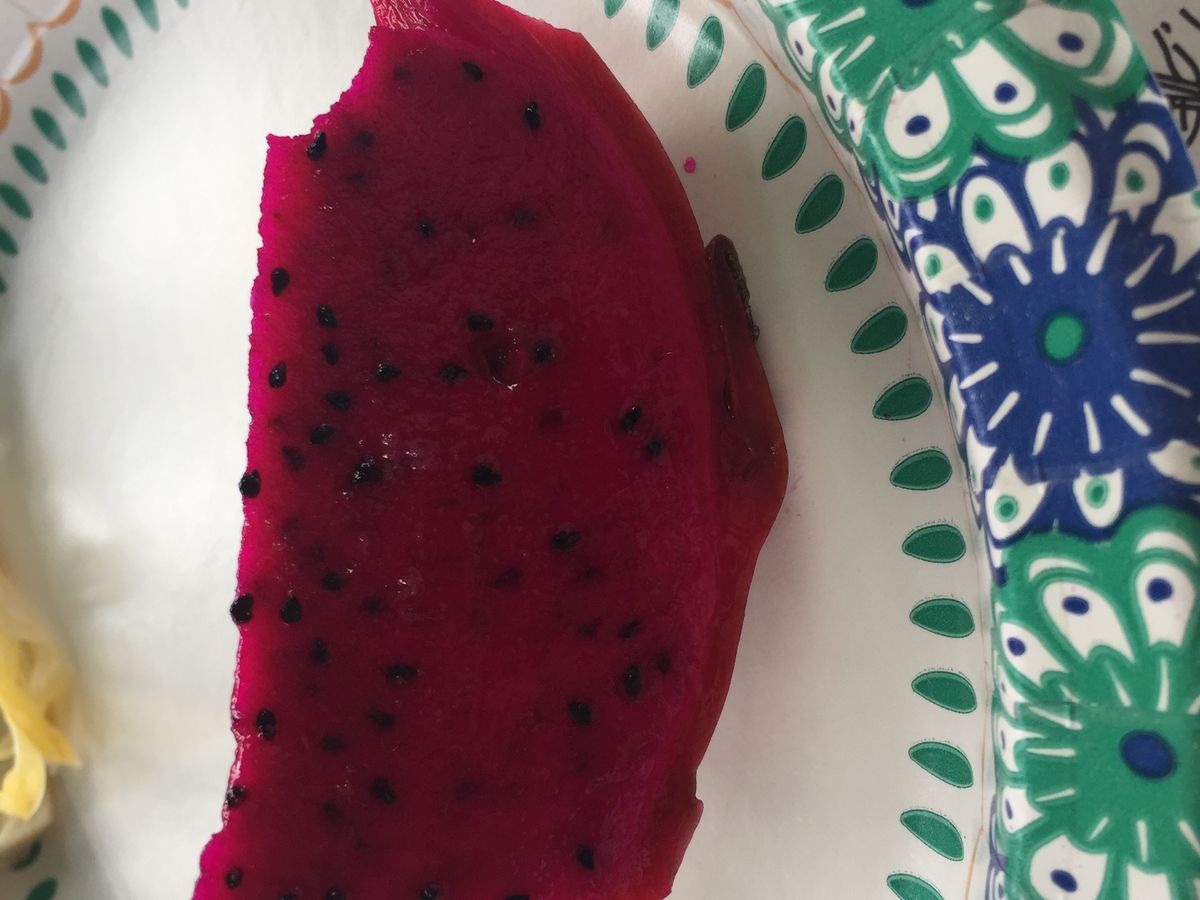 テーブルにはアボカドの他3種類ほど用意されていて、切りたての果物をその都度配ってくれます。マンゴーやドラゴンフルーツ、パッションフルーツなど。最後に待ってましたハニーパイナップルです。一切れ食べてみると、甘い〜の一言です。パイナップルだけどパイナップルではない甘さ。こんなの食べたことな〜い。