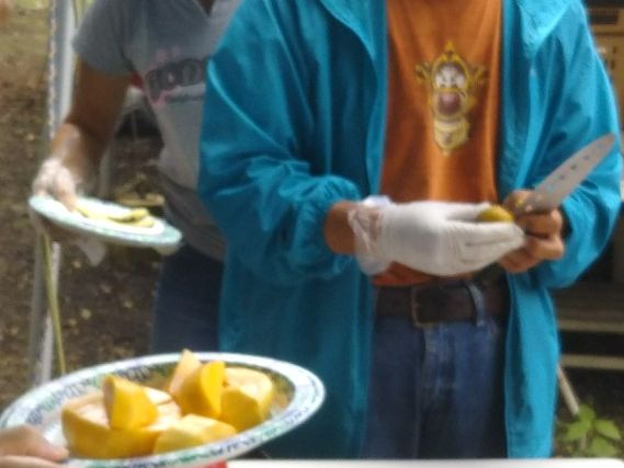 園内を見終わった後には、テーブルとイスが用意されていて、一番のお目当てのハニークリームパイナップルや、アボカド、マンゴー等々のトロピカルフルーツがドンドンと出され、本当にお腹いっぱいになりました。(笑)