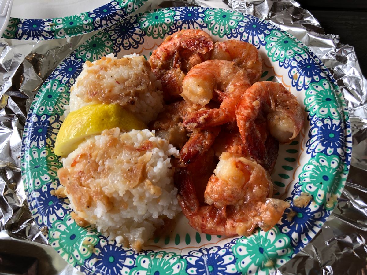 マラサダ、ガーリックシュリンプ、フリフリチキン、パインアイス・・どれも一人前を2人でシェアして食べたのですが常にお腹いっぱい!