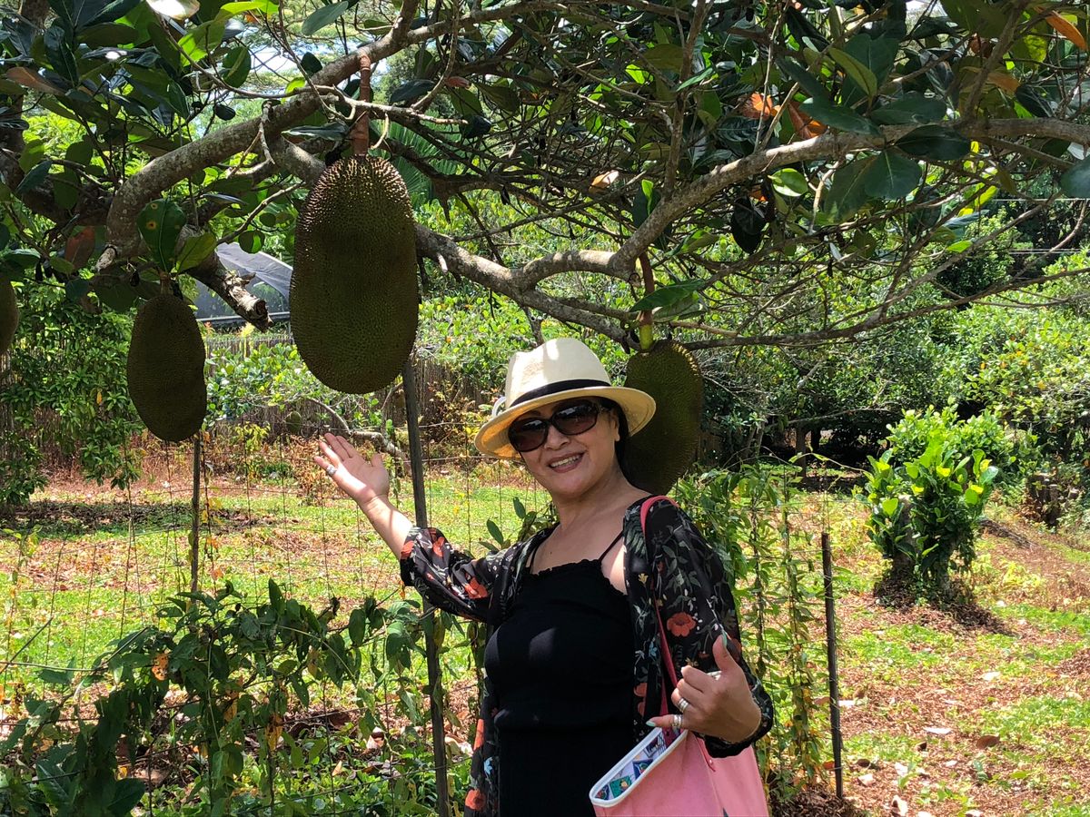 ガイドのユミコさんが、様々な解説をしてくださり、これまで、お皿の上でしか知らなかったフルーツの木や、花、果実のなり方などを教えて下さいました。