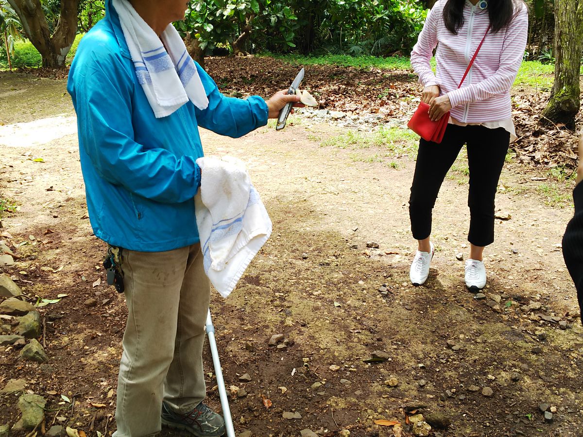 果樹園では園内を散策してその時食べられるフルーツをいただきます。日本で食べなれないものがほとんどで美味しいもの、そうでないもの、たくさん!ガイドさんが丁寧に切り分けてくれます。