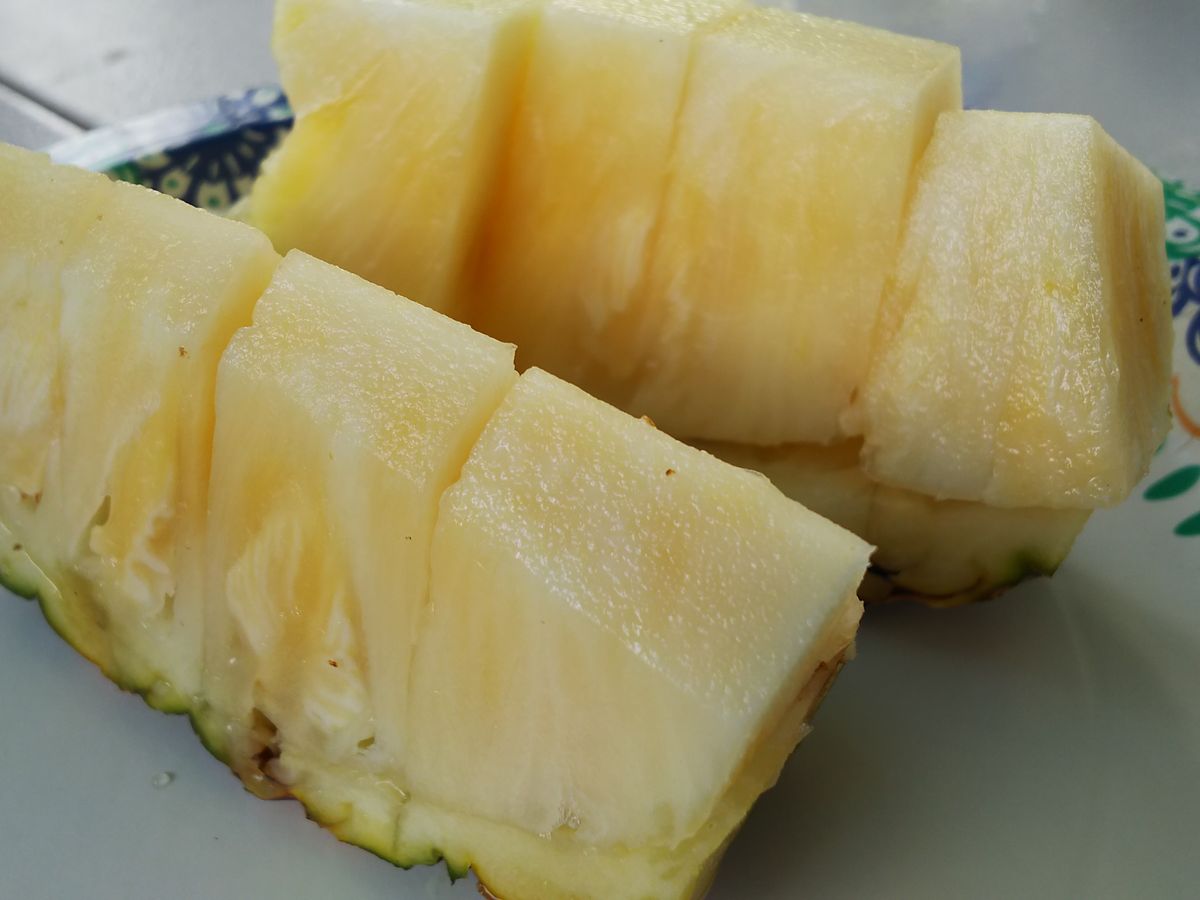 次々に切り分けてくれて、お腹いっぱいです。日本では高くて変えなそうなマンゴーも二人で1つ、メインのパイナップルも満腹でしたがいただきました!