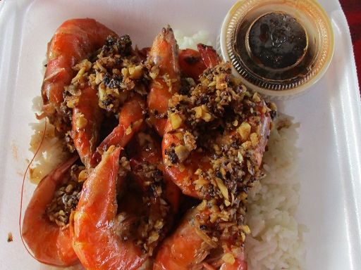 ハレイワに行く途中で、皆さん待ってました「ガーリックシュリンプ」のランチタイムです。私的にはまあまあでしたが、でも他の方々は美味しいそうでした。ここら辺でそろそろ皆さんとも仲良くなり、和気あいあいとツアーを続けました。