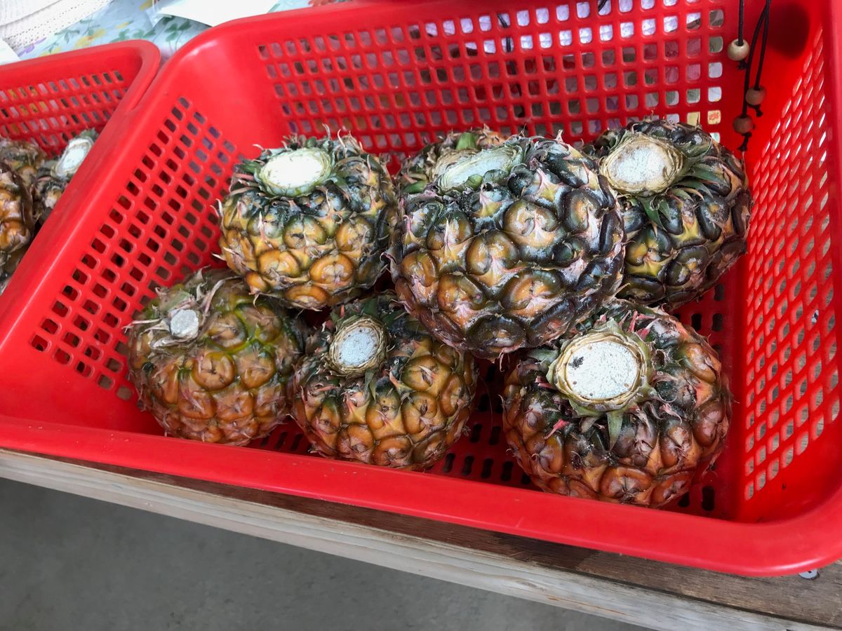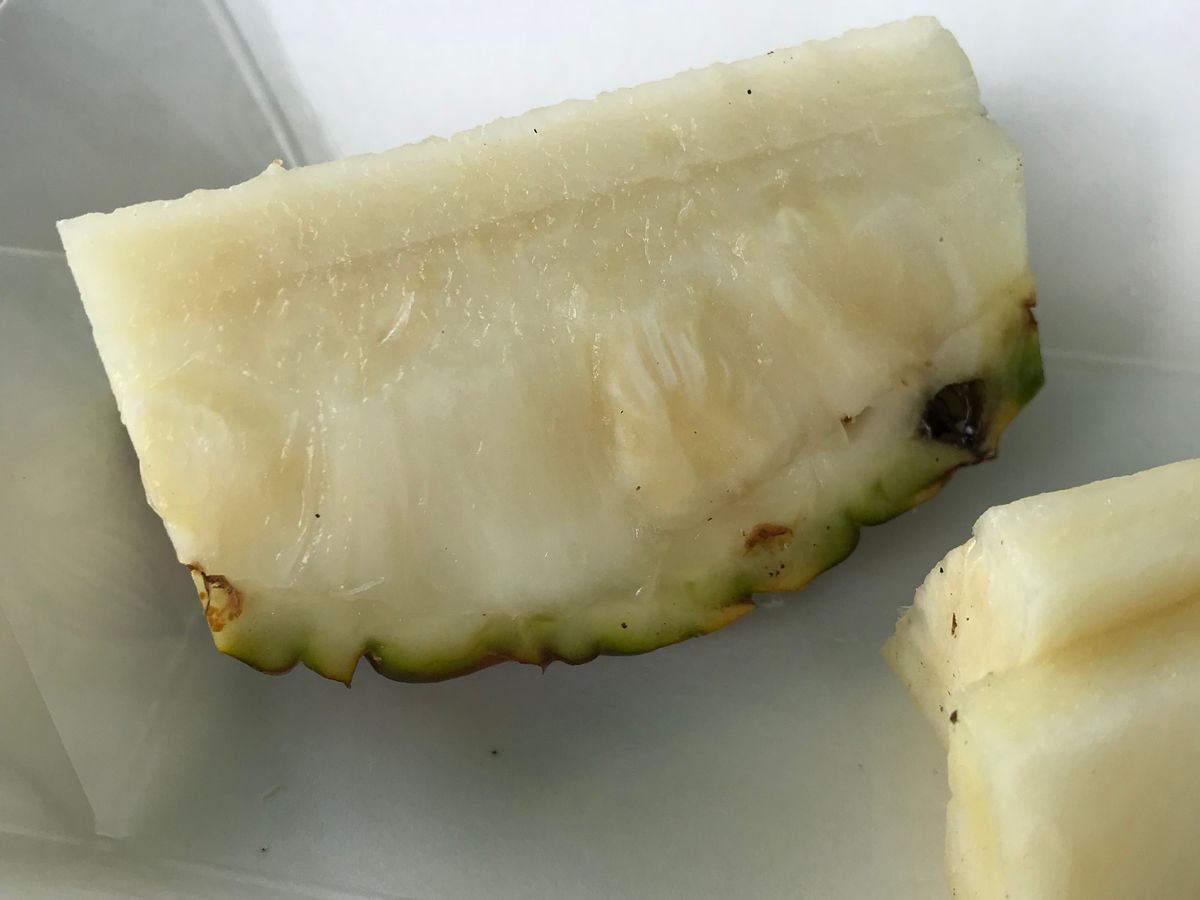 初めて食べる物や、普段食べているパイナップルの概念が覆るようなパイナップルに出会う事になりました。色は白っぽいので、酸っぱいのかなぁー。と、思っていたら甘さが半端ないです。
