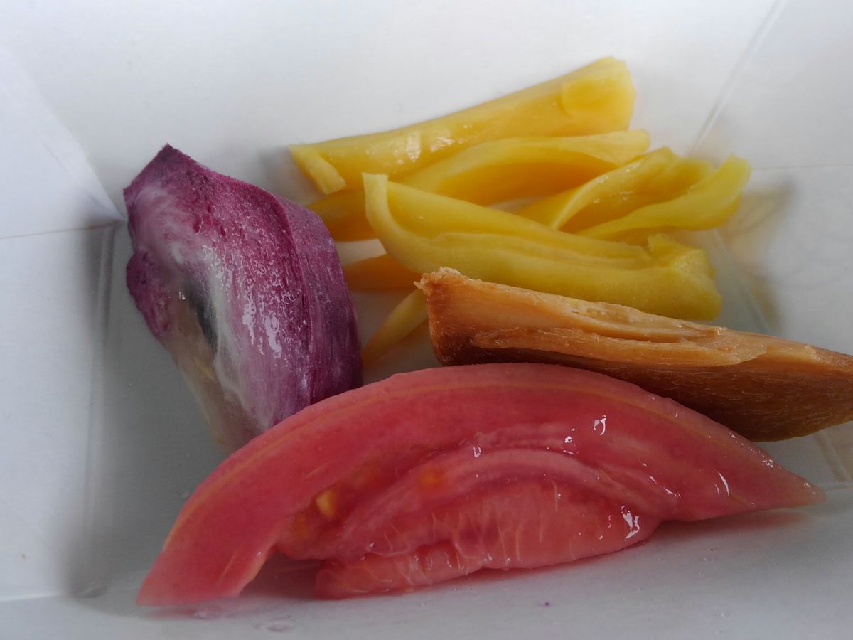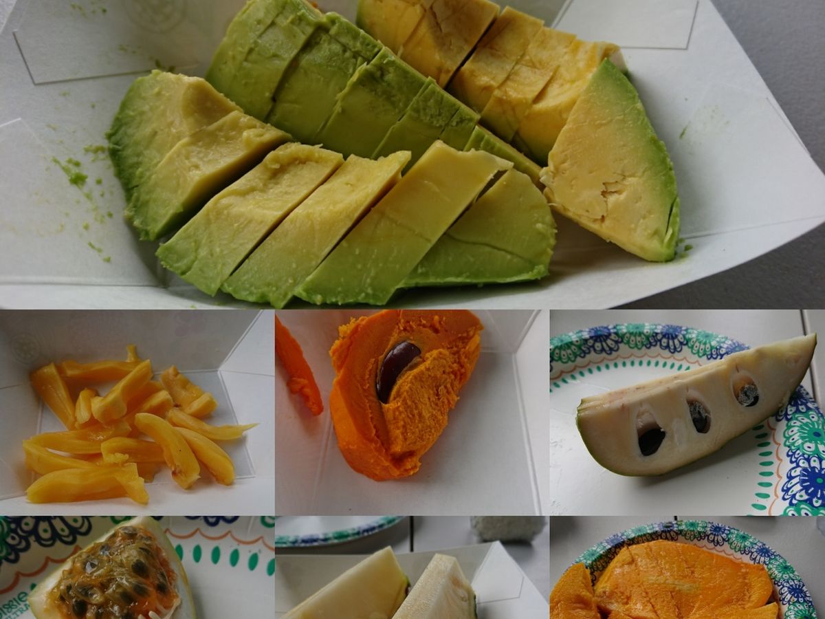 試食はたっぷり用意してくれているので、たくさんの種類の果物をいただきました。けっこうこれでお腹いっぱいです。
