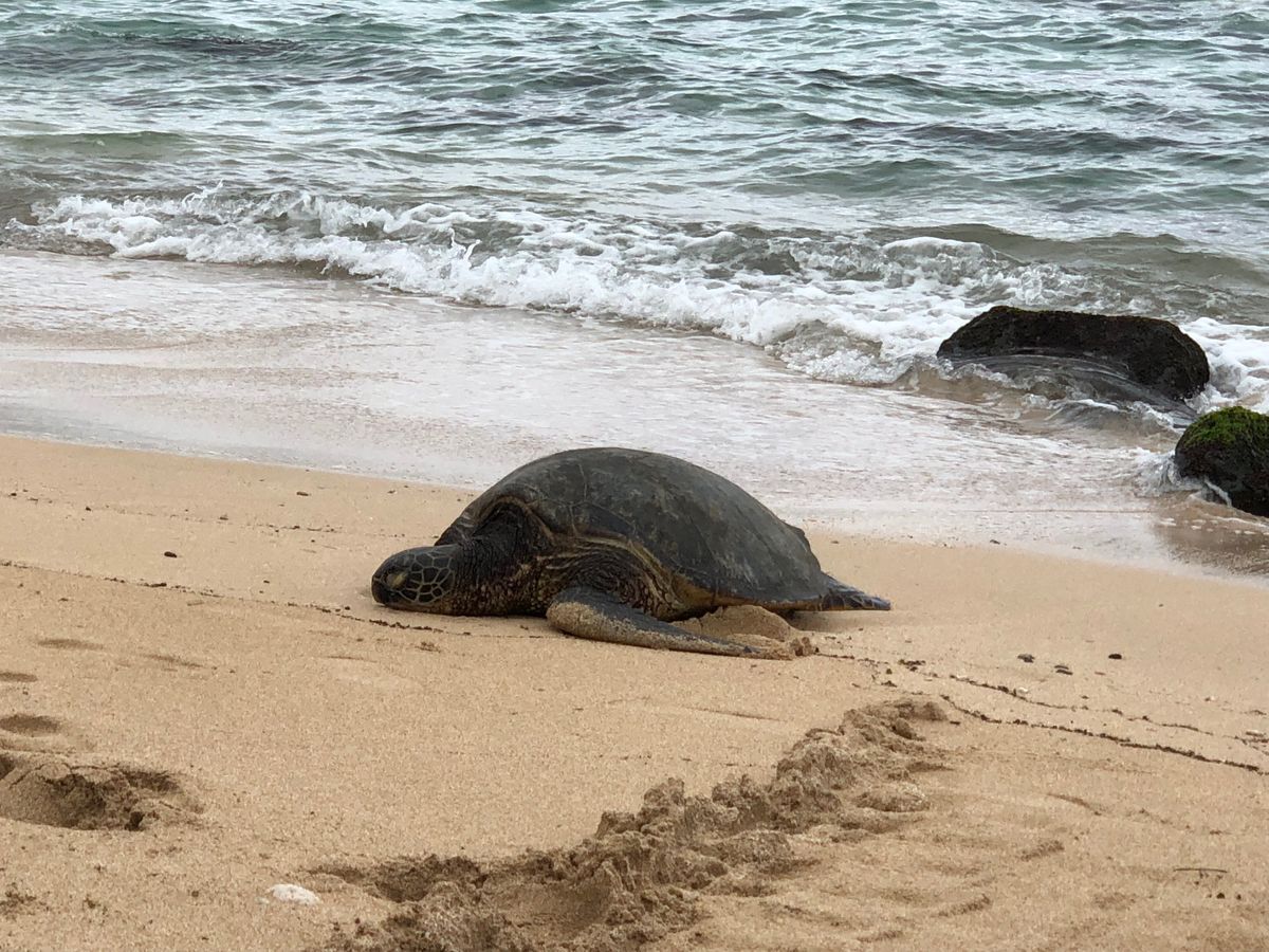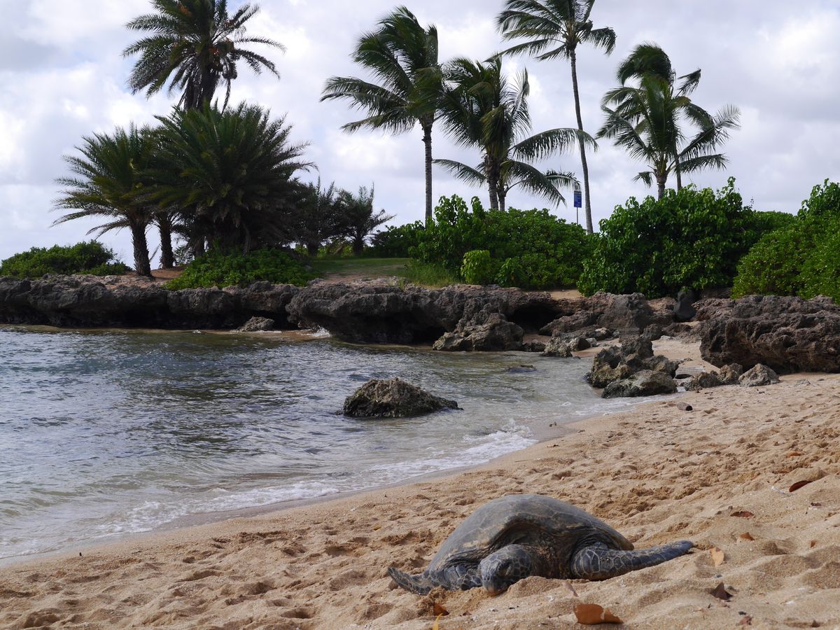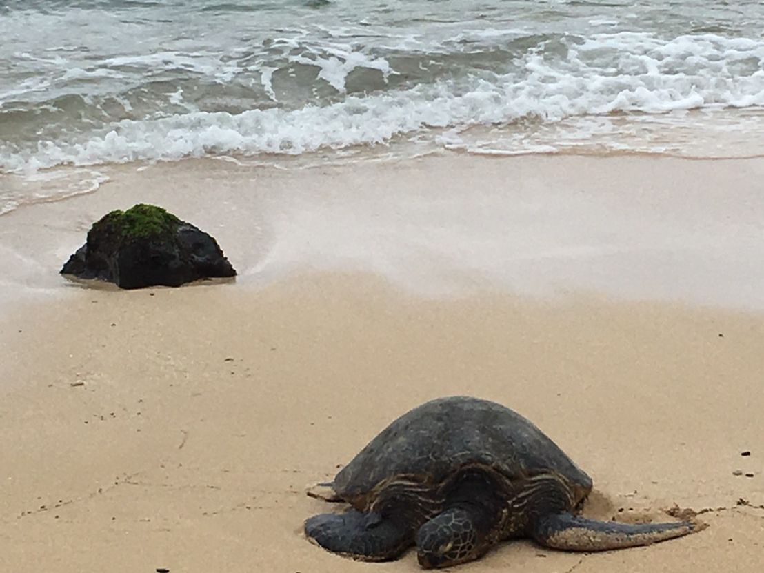 ノースショアでは運よくウミガメがみられたが、彼らは甲羅干しの最中で全く動いてくれなかったのは少し残念だった。