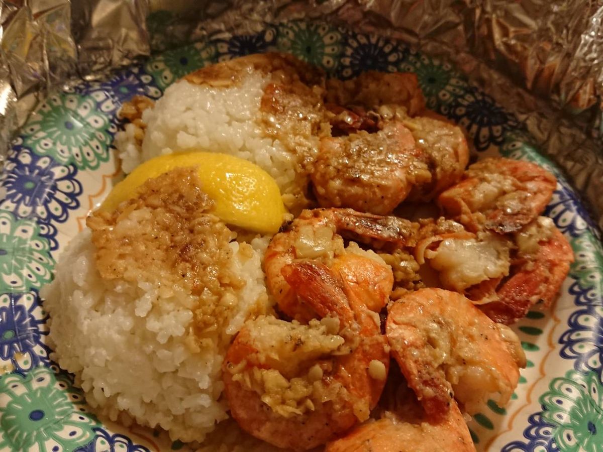 お昼は、ビックウェーブのガーリックシュリンプ。