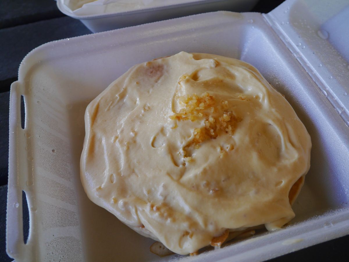 ブーツ&キモズでは、パンケーキの他にオムレツ&ピラフも紹介してくださり、オムレツの中にエビが入っていて、そのホワイトソースがとても美味でした。予約していただいていたので、取りに行って車の中で食べながら次の場所へ移動というスタイルでした。