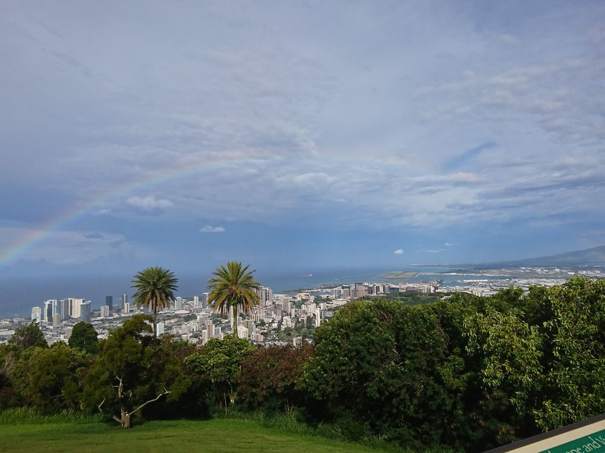 昨年の10月に同プランに夫婦で参加しましたが、大変有意義なツアーだったので今回家族で再度参加しました。ホテルに時間どおり前回同様、ガイトのSAKAIさんが迎えに来てくれました。ツアー参加者、全員が揃うと丁寧な説明が始まりました。最初のタンタララスの丘はホノルルが一望でき右はホノルル空港、左はダイヤモンドヘッドまで見渡すことができ雨上がりだったので綺麗な虹が・・・。今回は、ほぼ前回と同様のコースだったのですが真珠湾の潜水艦等の見学なく、そこから日立の木があるモンキーポッドの実物に会えるモアナルア・ガーデンに。見学も終わりバスに戻ると、ダイヤモンドヘッドマーケット&グリルのスコーンとお茶をいただきとても美味しくいただきました。イオラニ宮殿はやはり個人で見学するよりも案内してもらった方が、よく理解する事ができます。カメハメハ大王を見てこの半日コースが終了しました。片言の日本語で説明してもらって意味不明の事もよくありますが、日本人のSAKAIさんの説明は車内モニターも利用し、よく理解する事が出来ました。