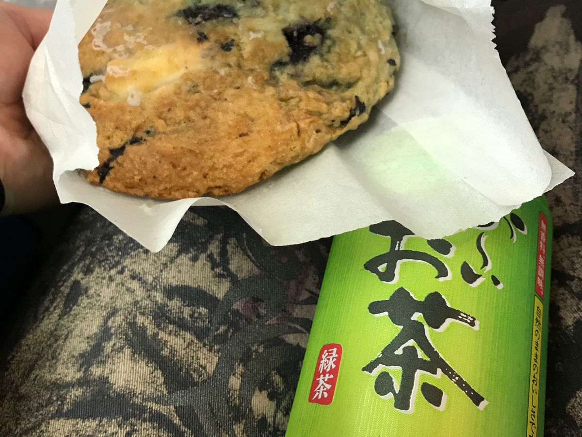 ハナウマ湾から次のカメハメハ大王に行くまでに缶の緑茶とスコーンが貰えます。