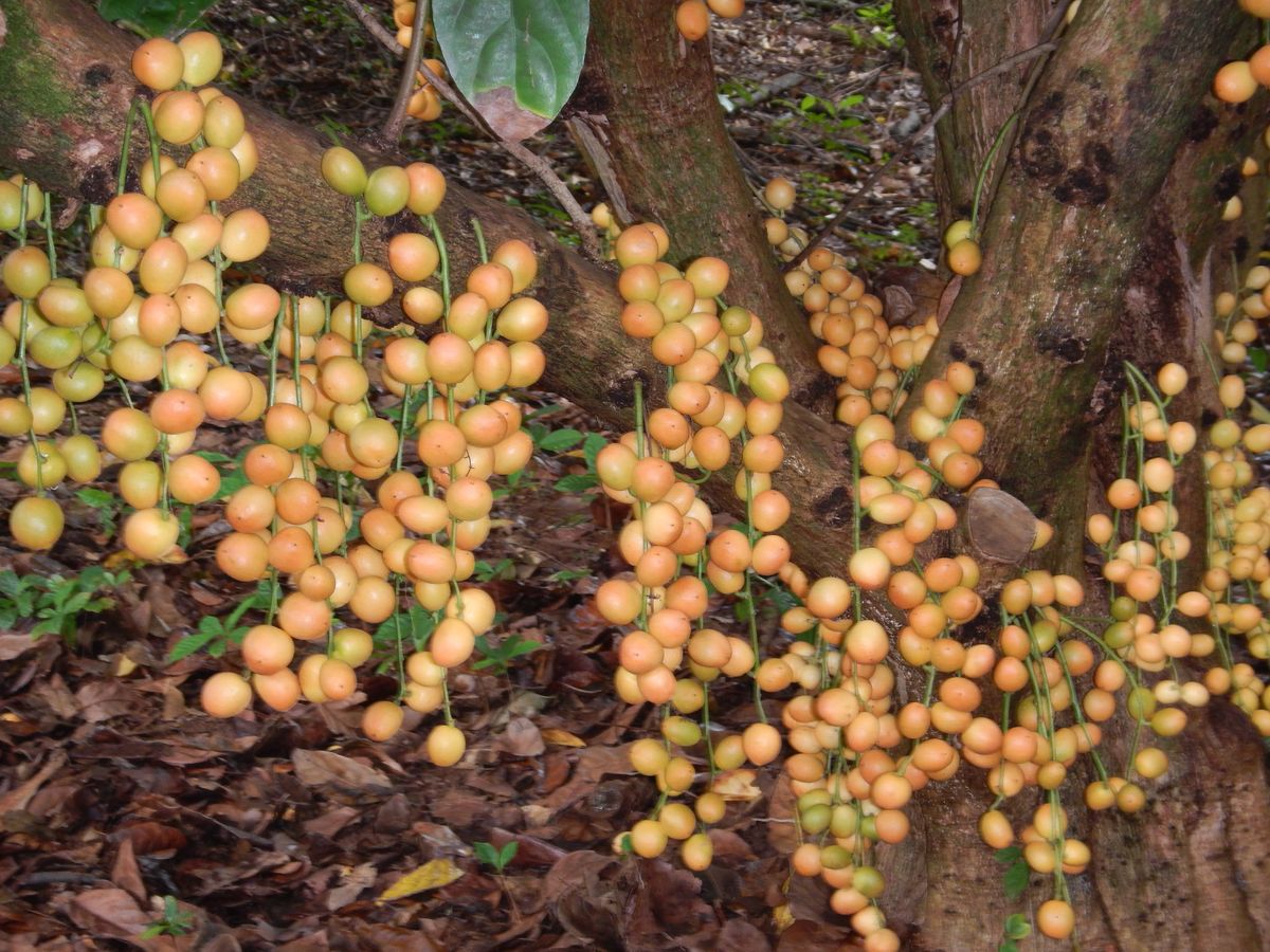 散策が始まってまたまたビックリ、見たこともないくだものが・・出てくる、出てくる、名前も知らない見たこともないもの、食べるときは、名前をきいてからたべていたんですが、次にいくともう前の果物の名前はわすれてしまっています。道もない、山の中というか林の中というか案内に従って歩くきながら、食べながら回っていたら、あっという間に時間が過ぎてしまいました。一回りしてきて、果物の試食がまりました、