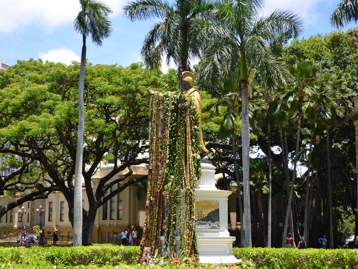 カメハメハ大王像でも写真撮影。
