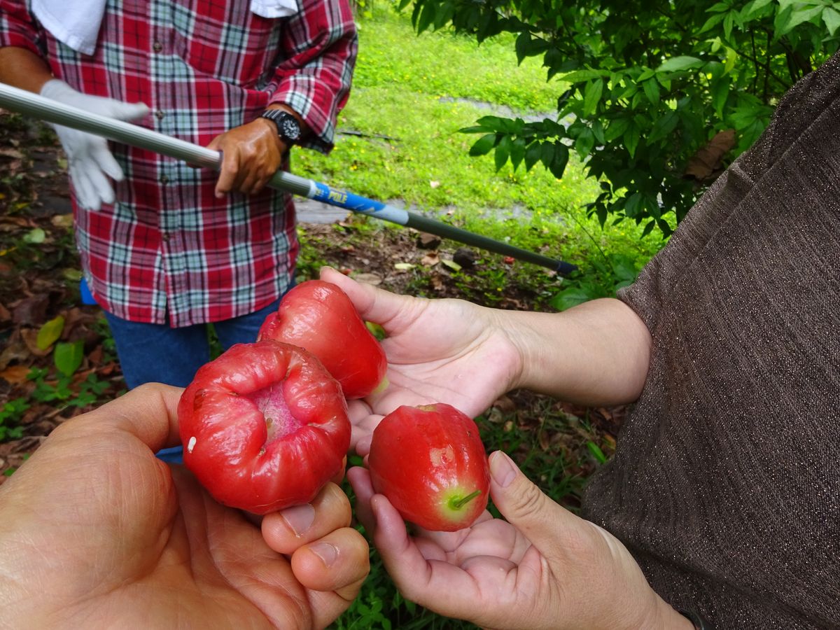 フルーツ試食は、先のマンゴー、パイナップル、アボガドの他にも果樹園でみた果物もいただくことができます。