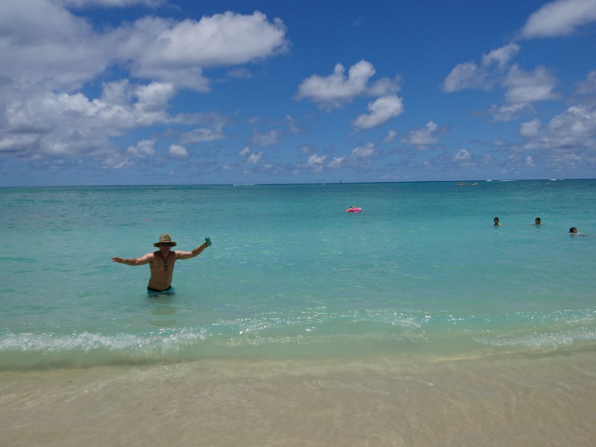 ノースとラニカイ・カイルアビーチとB級グルメのツアーに参加。パワーのバースストーン、ウミガメビーチでカメさんにご対面、海の中の3匹の泳ぐ姿が可愛かった。フリフリチキン(このために土曜日のツアーを)・ガーリックシュリンプでスタミナをつけていざ、ラニカイビーチへと向かいました。全米1になったビーチだけあって、沖の島との景観が最高でした。ガイドの大介さんは色々な説明をしながらも雑学を披露してくれて、パイナップルの美味しい見分け方やフードランドでのお土産買物アドバイスとたのしさ満載の1日でした。天気も最高で、最後に「家に帰るまでが旅行です」と言う修学旅行的な言葉で〆となりました。思い出に残る1日でした。