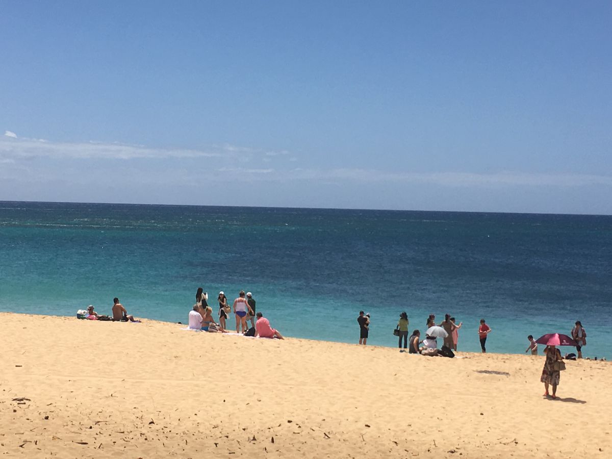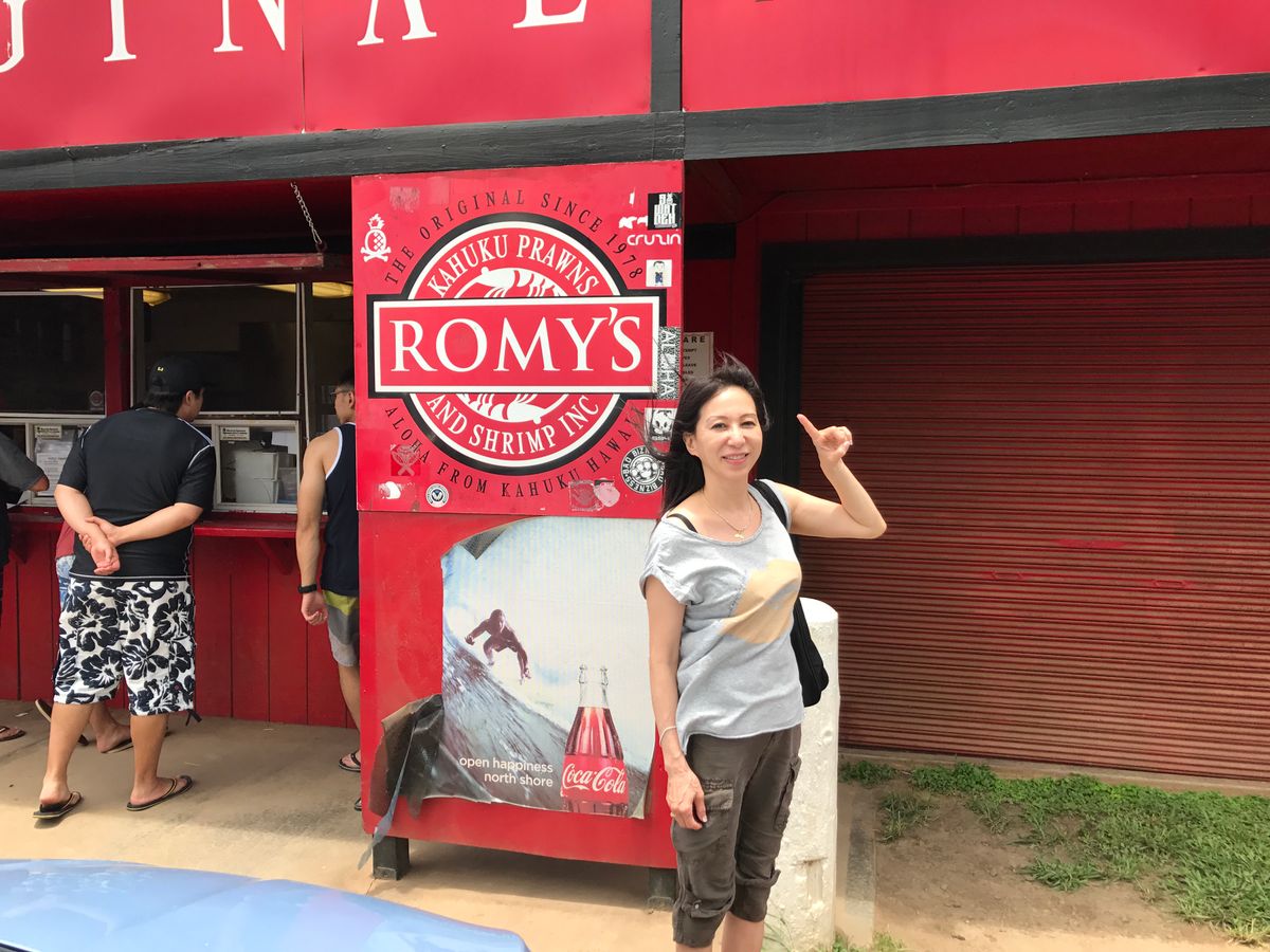KCCでは地元の美味しいB級グルメを楽しんで、レナーズのマサラダを行列せずにゲットでき、マカダミアナッツの試食とコーヒーをいただき、ジェラッシックパークで有名な牧場をバックに写真を撮り、大行列を横目にガーリックシュリンプをいただき、TED'Sではケーキを堪能、ハレイワではお散歩しながらマツモトシェイブアイスでグッズを購入しフリフリチキンをテイクアウト。運が良ければウミガメも見られるとのこと(トドは見られたが)。最後はドールでパイナップルアイス!最高の1日!!