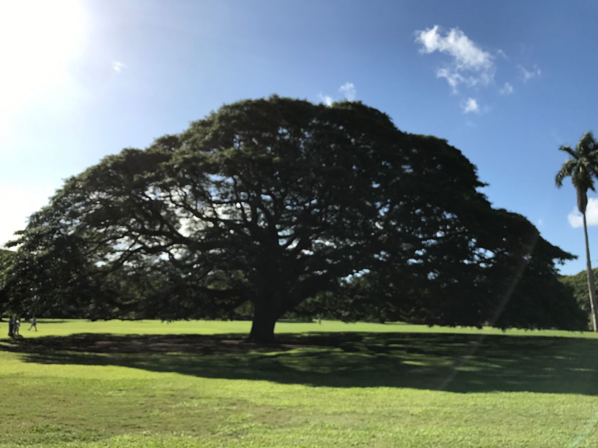 後で送ってくださったモアナルアガーデンズの写真を見ると木と太陽とのコラボレーションは、この時間でないと撮れないショットです!