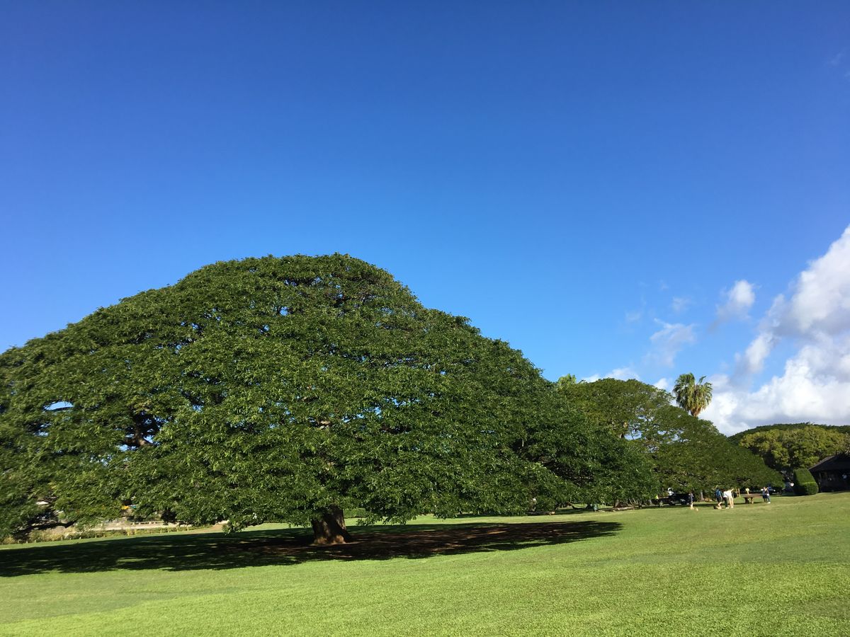 今回は2回目のハワイだったが,前回はアクティビティばかりでハワイの文化・歴史面は全く触れられなかったので,今回はこのツアーをチョイス.当日は朝7時半頃にピックアップ.今回の参加者はうちの夫婦だけで,ガイドさんを独占状態.ドライブ中も現地でもガイドさんがいろいろな解説をしてくれて質問もし放題.各地のおすすめ写真ポイントでは毎回写真を撮ってくれました.最初に訪れたのはタンタラスの丘.夜景で有名な場所だけど,昼間も絶景.ダイヤモンドヘッドからパールハーバーまで見渡せるすばらしい景色でした.パールハーバーに向かいながらモアナルアガーデンに立ち寄り,この木何の木を鑑賞.パールハーバでは残念ながらガイドさんが解説をするのが禁止になってしまったそうですが,事前に車中で予習解説をしてくださったので,現地でも分かりやすかったです.ただし対岸の戦艦ミズーリやアリゾナに行くボートは2〜3時間の大行列のため行けません.最後はハワイ王朝の文化・歴史が垣間みれる王家の墓とイオラニ宮殿.向かう途中にはダイヤモンドヘッドマーケット&グリルのブルーベリースコーンがおやつに出てきました.おいしいし大きいしで大満足.宮殿も各部屋や王朝の歴史を丁寧に解説してもらえて満足のいくツアーでした.ワイキキに戻ってくるのは13時頃.ツアーのあとにも午後丸々使える時間があるので,時間効率も抜群なツアーでした.