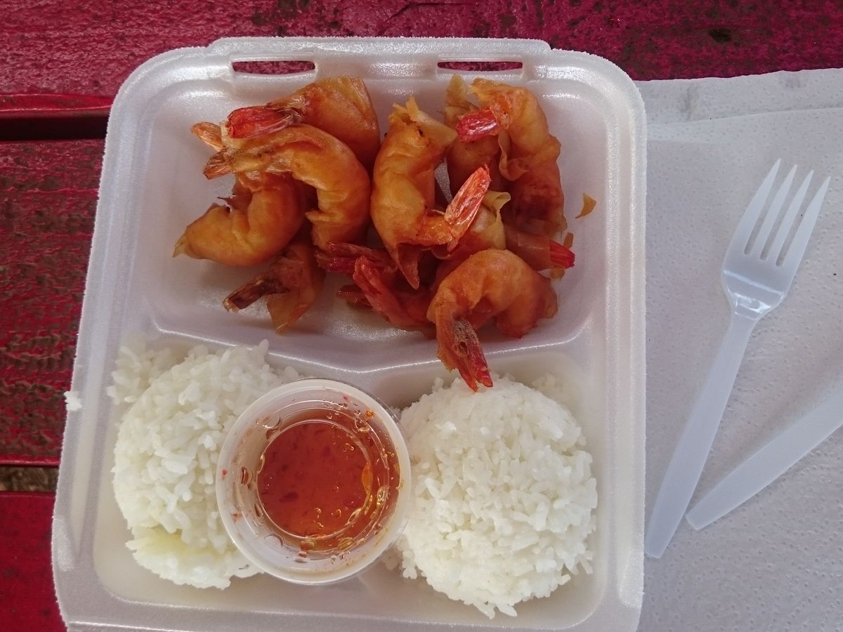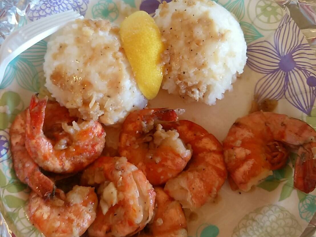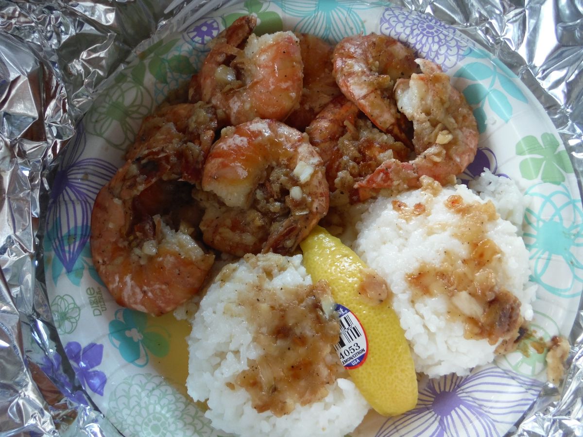 ガーリックシュリンプは移動中の車内でいただけたので、ハエに邪魔されずに済みました。