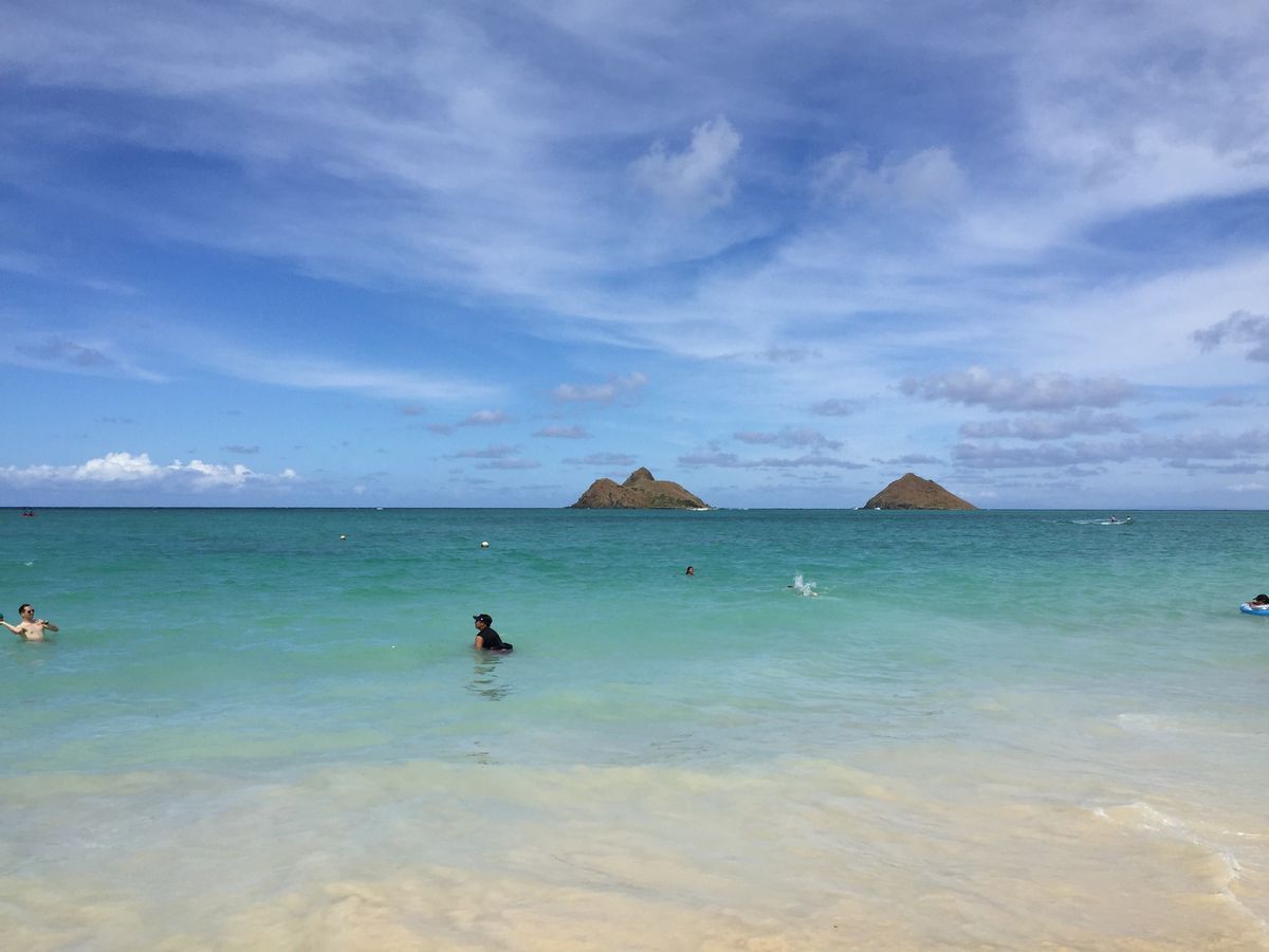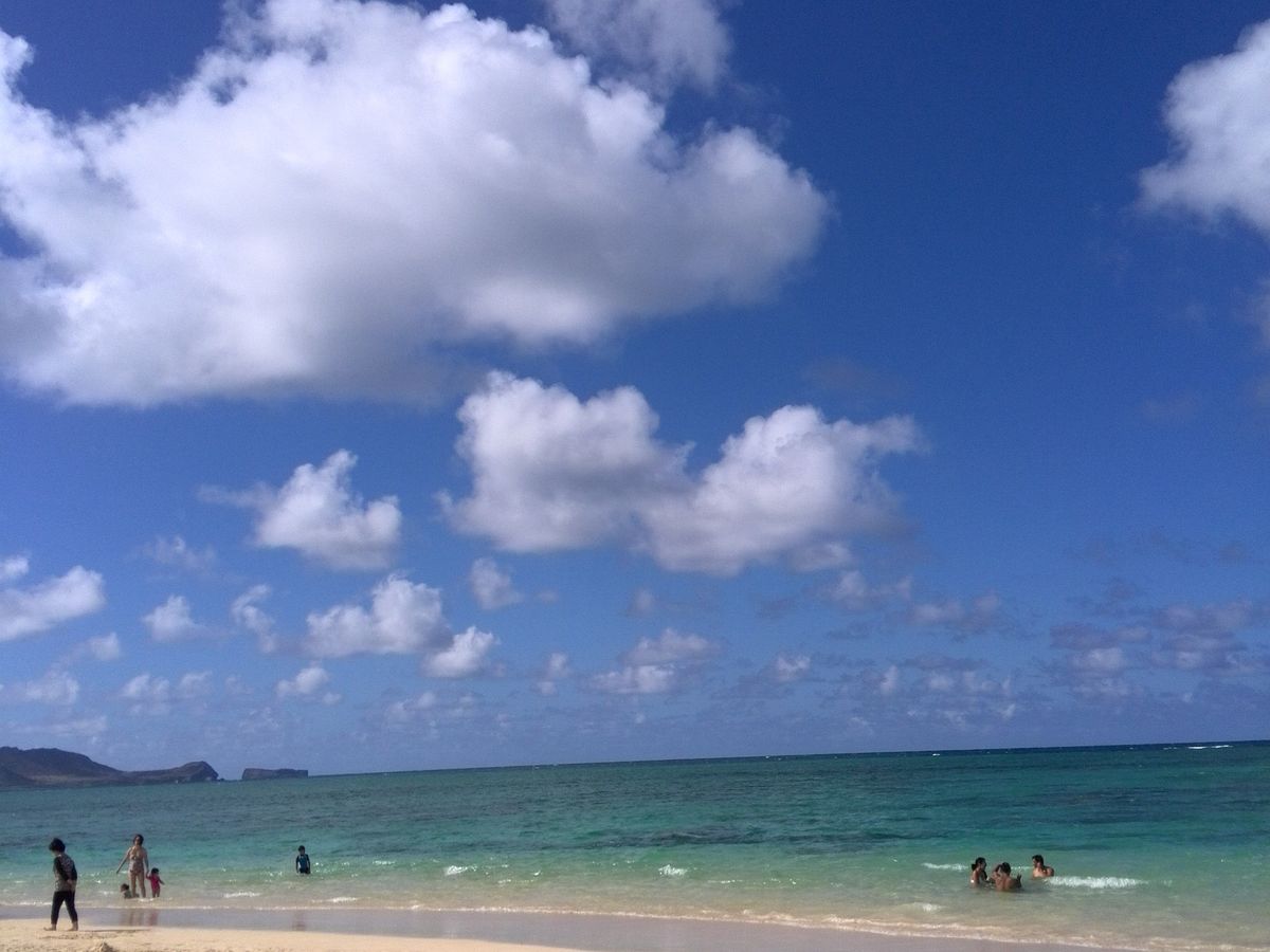 午後はものすごくきれいなラニカイビーチでシュノーケリング。今回の参加者はみな丘トレッキングではなくビーチ希望だったので、シュノーケルする人は沖のほうまで泳いで行き、私と娘含め浅いところで海に浸かっている人もおり…思い思い楽しめました。