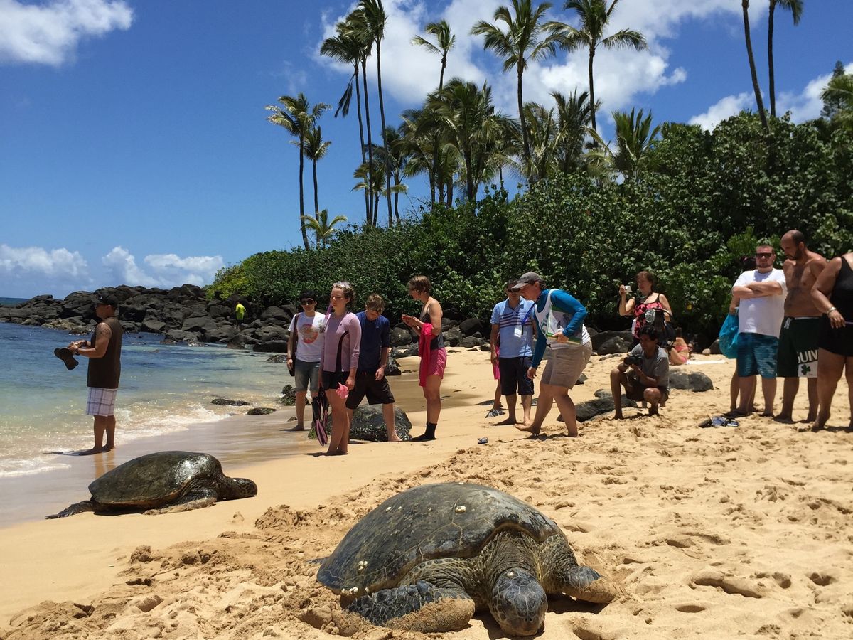 朝からこの木なんの木、バースストーン、ドールのパイナップル農園でパイナップルアイス、ノースショアでウミガメと遊泳と盛りだくさん。車内も自己紹介からハワイのミステリアスな話、ご自身の生い立ち、信条など交えて話していただけたので退屈せずあっという間にポイント間の移動が済んでいました!