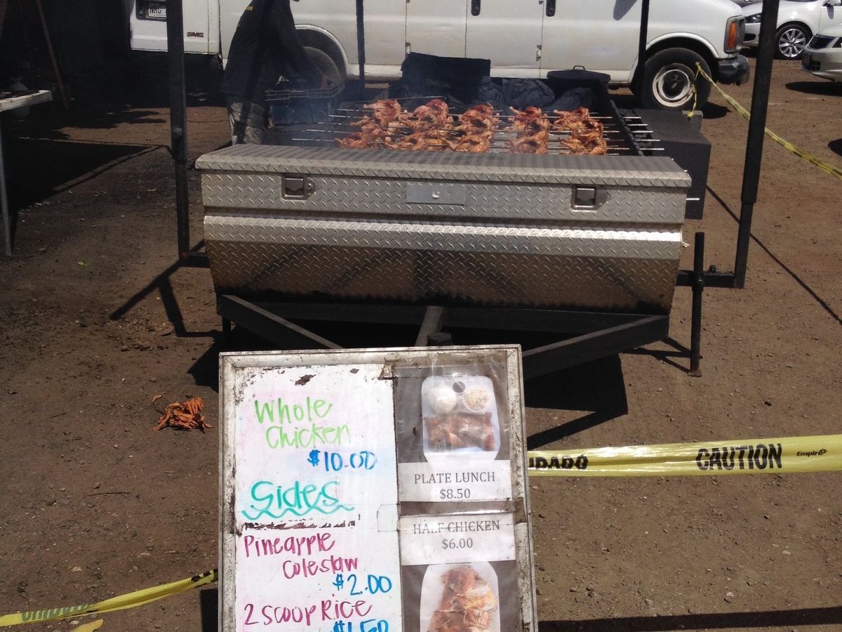 パイナップルと小さい飲み物が当社よりサービスとのことでしたが、帰り際メニューを何気に見たら、プレート通常価格より何ドルか高い支払いだったので(マージン?団体料金?)、あれ?と思いました。でも、かなりの行列の中、待たずに食べれたので良かったです。