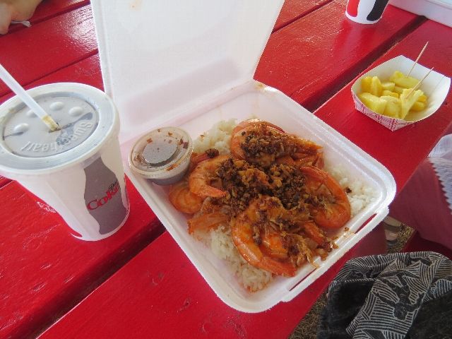 そしてライエ岬に行きました。地元の方が魚釣りしていましたね。それからカフク名物のロミーズのプレートランチのお昼ごはん、手が汚れますがお勧めはガーリックシュリンプ、美味しいです。