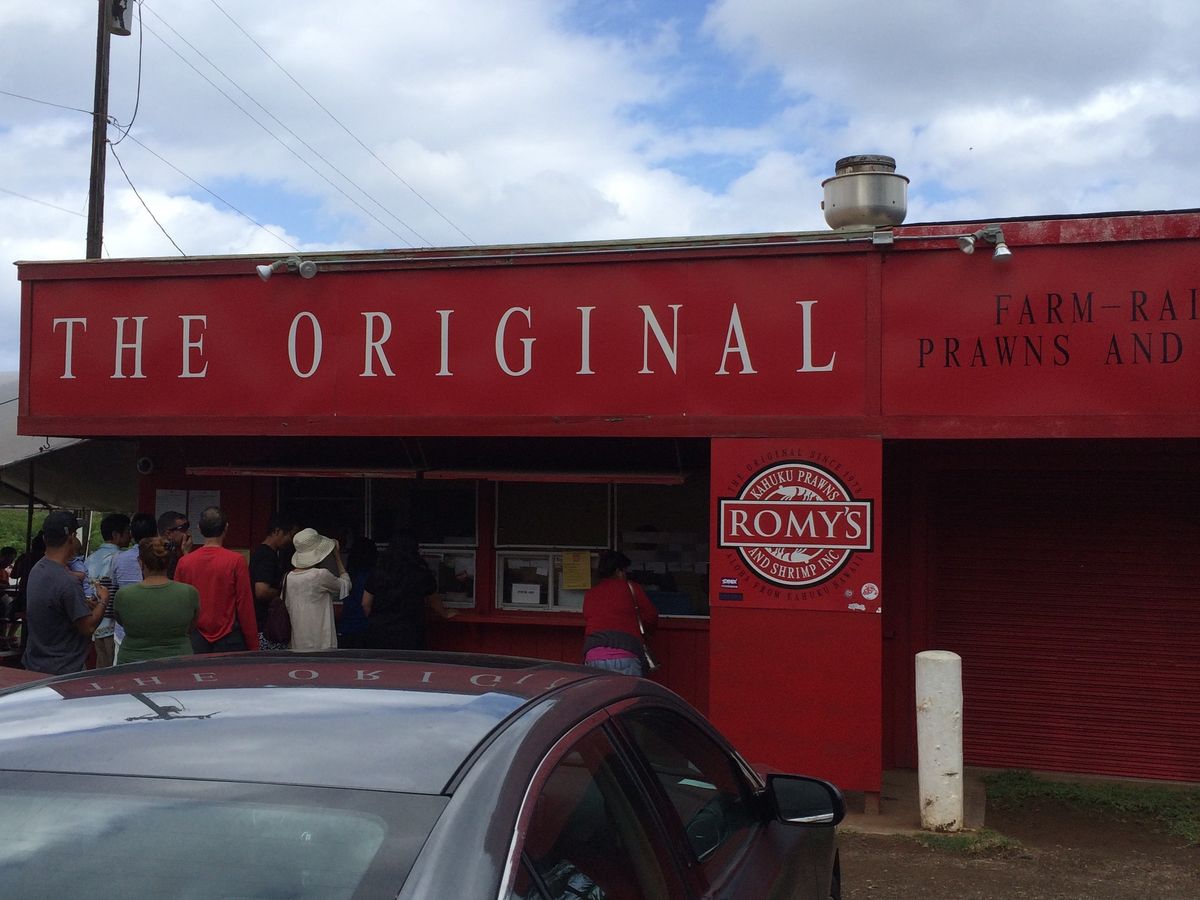 車の中で注文を取ってくれるので、到着すると待つことなくガーリックシュリンプを食べられます。