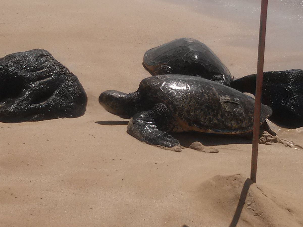ウミガメビーチでは2匹が甲羅干しをしていました。