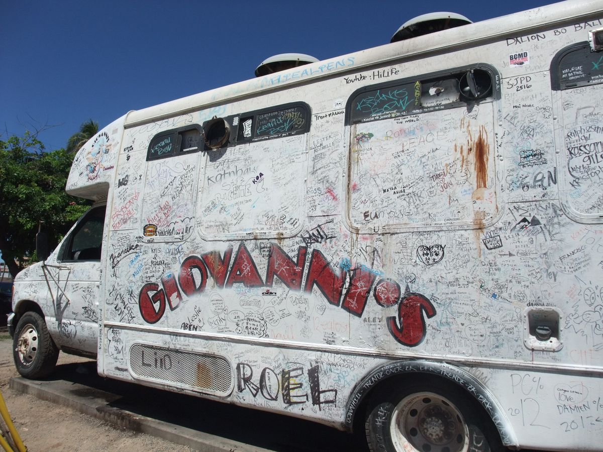 昨年の9月下旬にこの「B級グルメツアー」に参加した「リピター」の中年?夫婦です。オアフから帰った後も、次に行くときも必ずこの「ツアー」に参加しようと二人で話し合ってました。何故って・・?その答えは、ツアーの中身(総合的に)はA級であり。ガイドのアレックスは、客が日本人なのに「媚を売ることなく」、我々日本人の特性を見抜いて矢継ぎ早に「ジョーク=突っ込みかな?」を飛ばす・・等など。まさに楽しさ「特急&特級」だったからです。