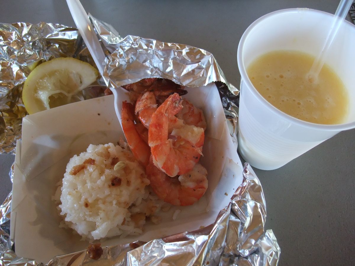 お目当てのエビの養殖で有名なカフクにあるジョバンニの本店(本ワゴン)で食べるシュリンプ・スキャンピー、ノースショアソープファクトリーでのショッピングに大満足!